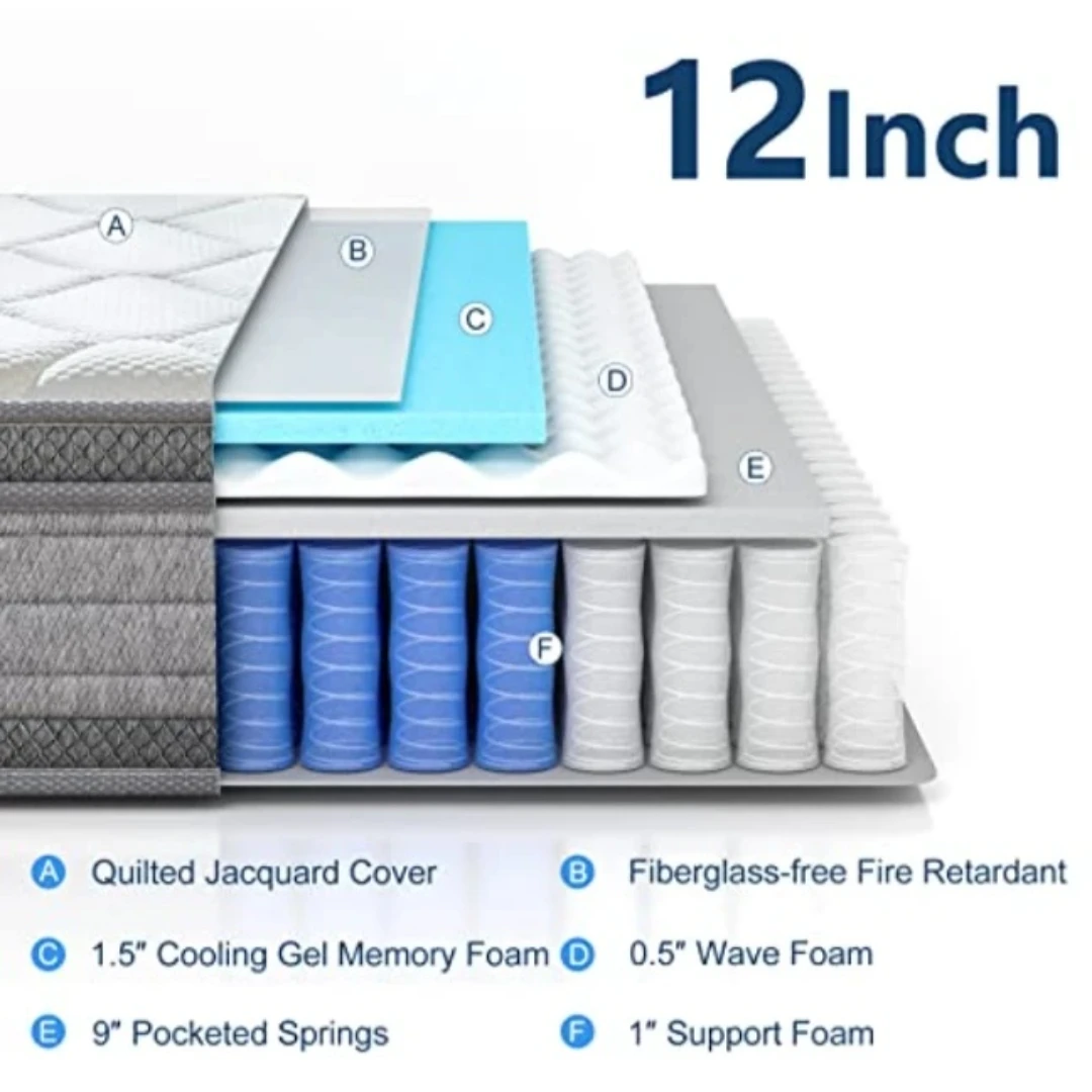 Hybrid design with memory foam + pocketed springs for better sleep