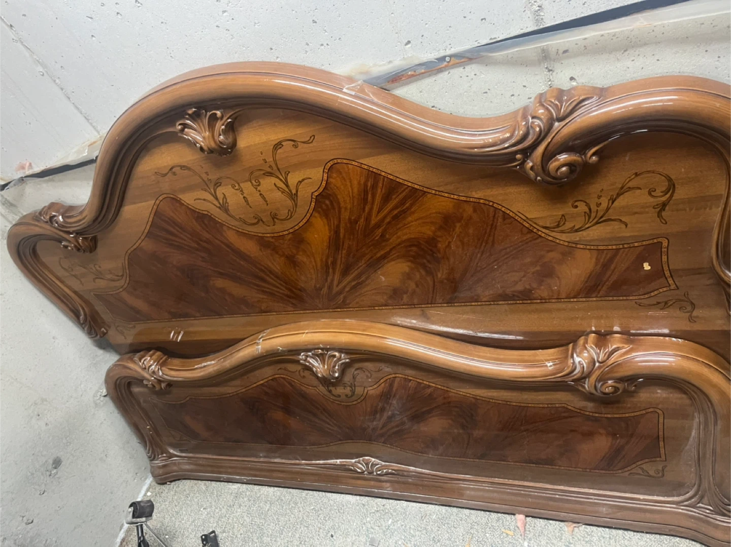 Selling a antique wood bed frame. It has a unique design with intricate carvings. If you're interested in a vintage piece, this could be a great addition to your home! Doesn’t come with any screws. Full size.