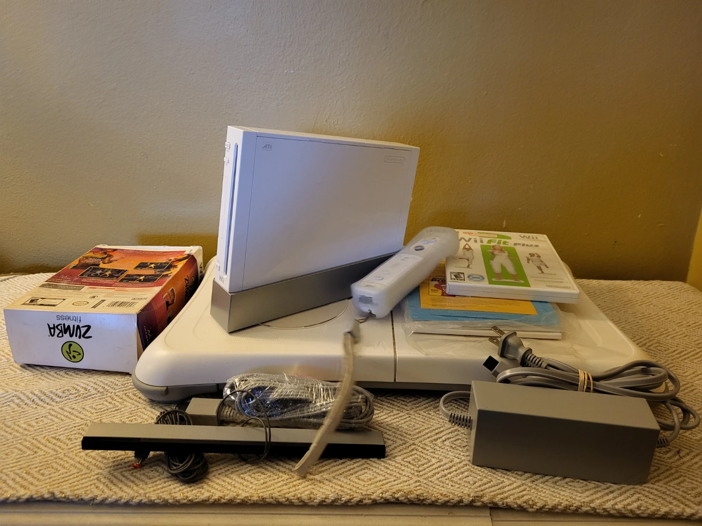 Selling a Nintendo Wii console in great condition! Includes the Wii Fit Plus game balance board, and the Zumba fitness game. Comes with all the necessary components to get you started: the console, Wii remote, sensor bar, power adapter, and the Wii Fit board