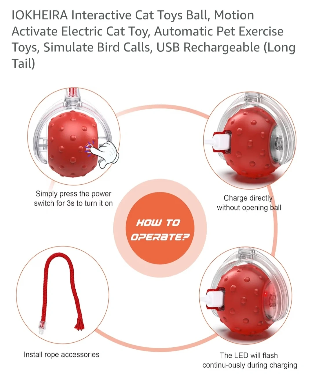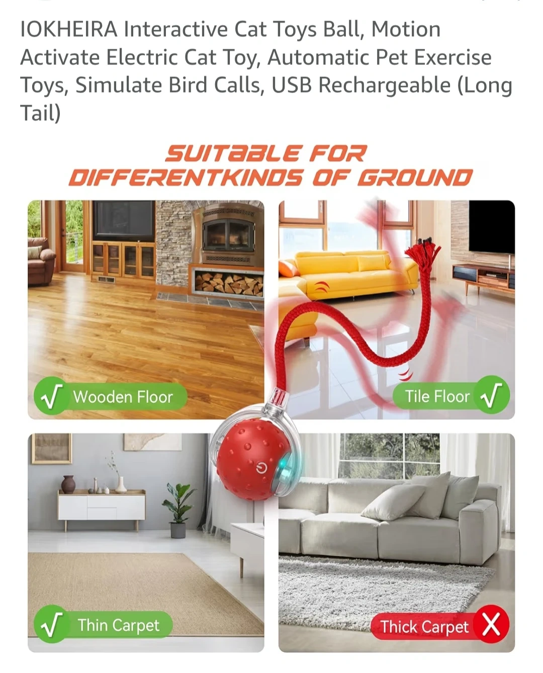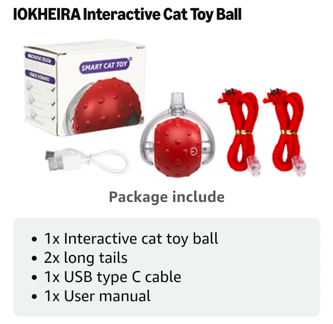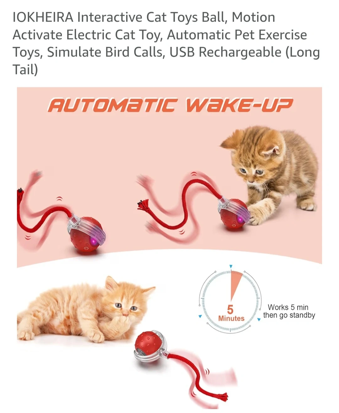 Interactive Cat Toys Ball, Motion Activate Electric Cat Toy, Automatic Pet Exercise Toys, Simulate Bird Calls, USB Rechargeable (Long Tail)