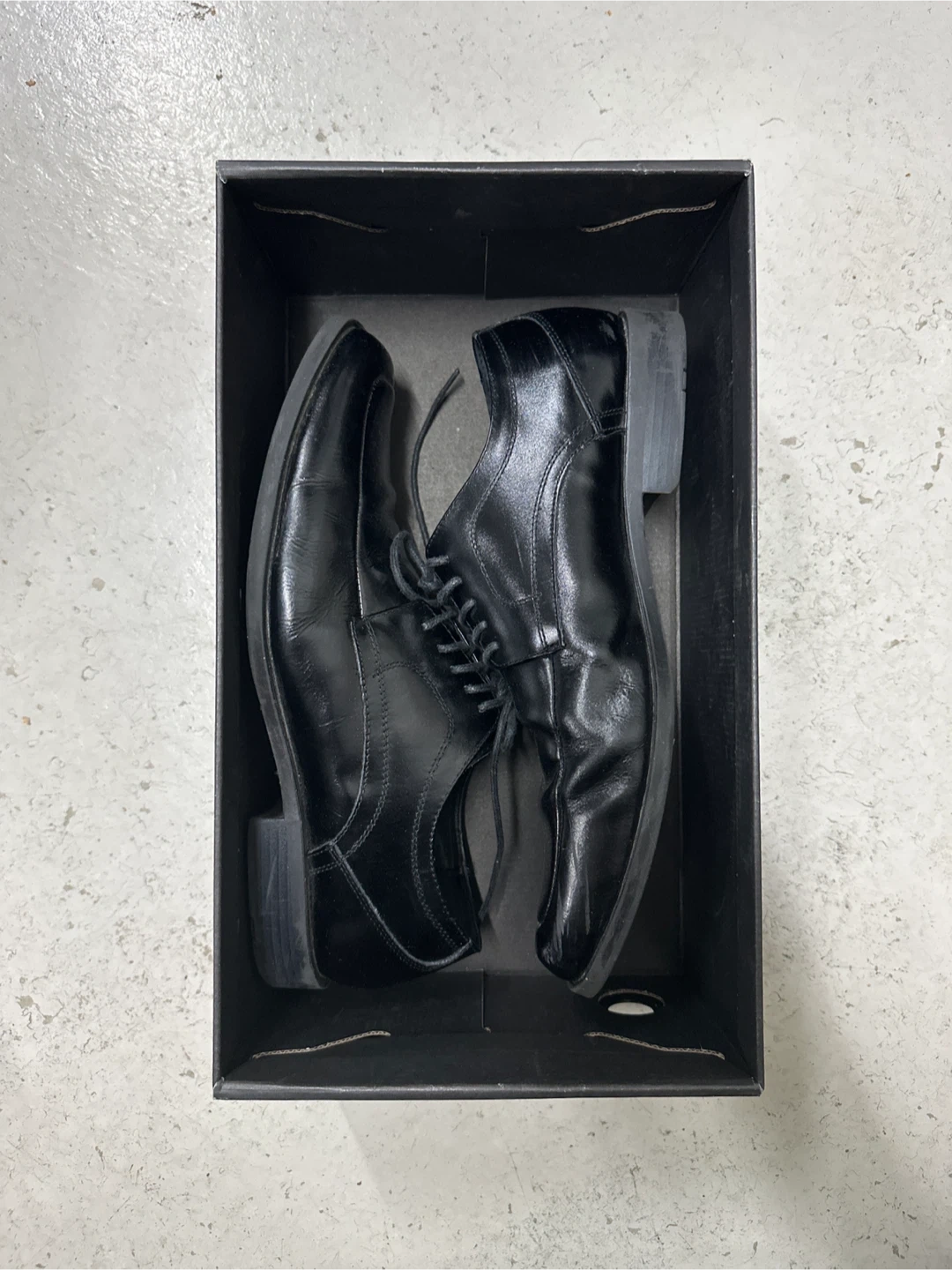 Selling a pair of black dress shoes in size 10.5. They come with their original box. Please take a look at the pictures to see the condition!
