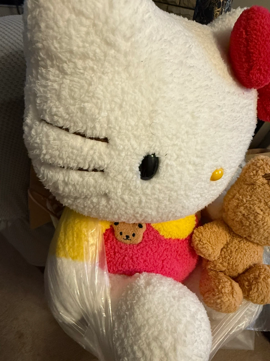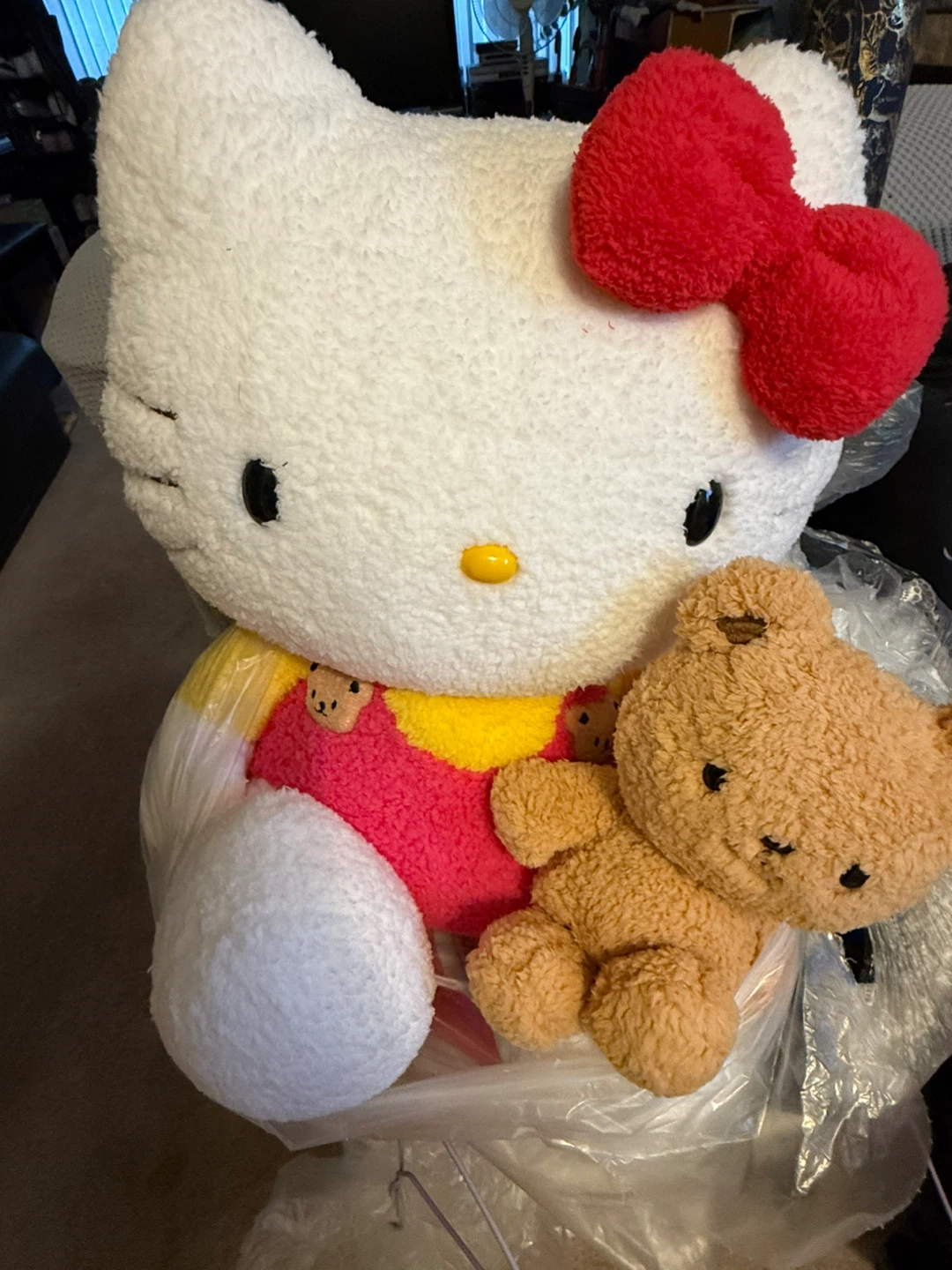Selling a cute Hello Kitty plushie! It's in great shape and comes with a little teddy bear friend. Perfect for any Hello Kitty fan or as a cuddly companion