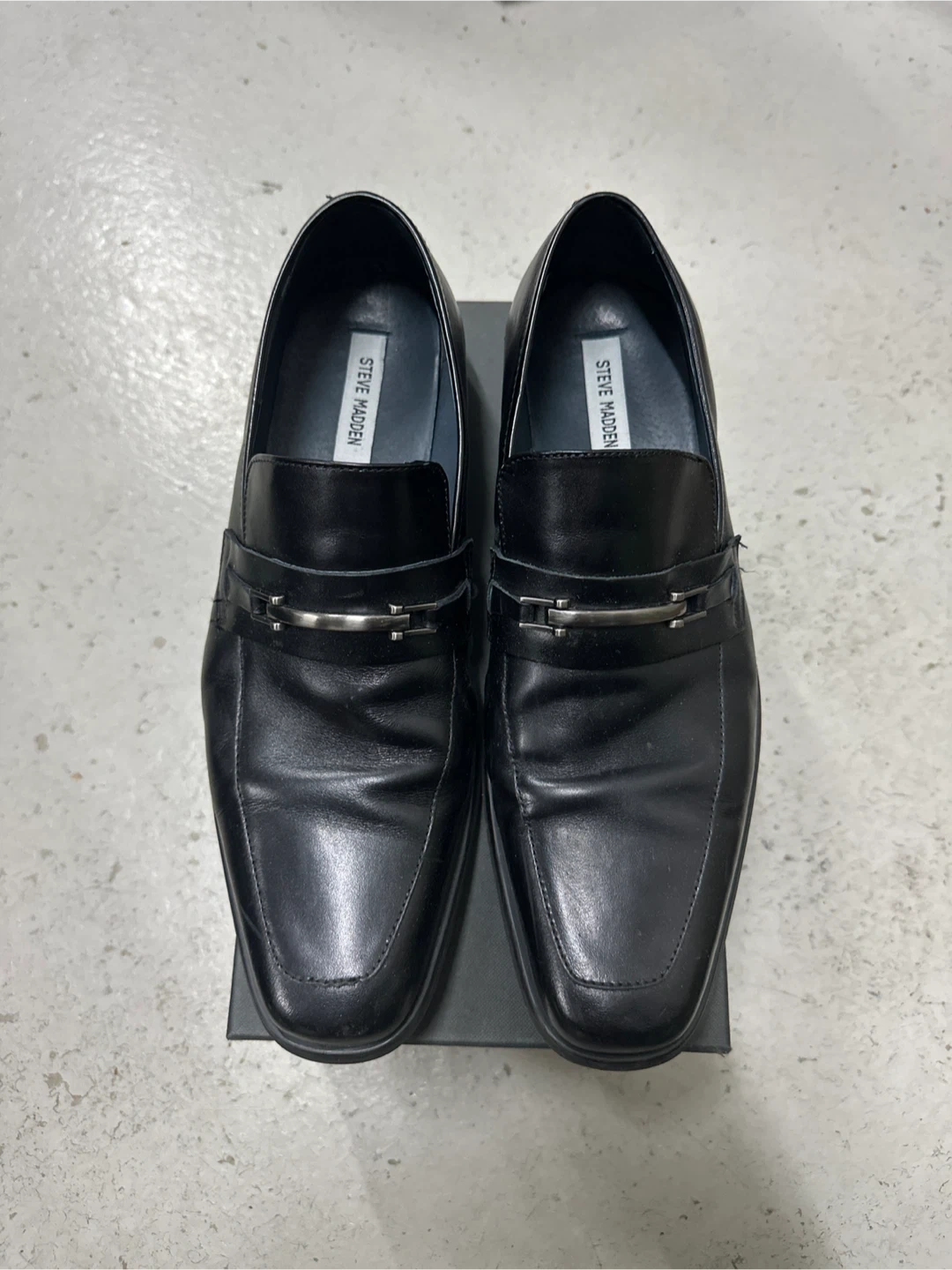 Selling a pair of Steve Madden black leather loafers. They're in great condition and come with the original box! Perfect for a night out or a business casual look