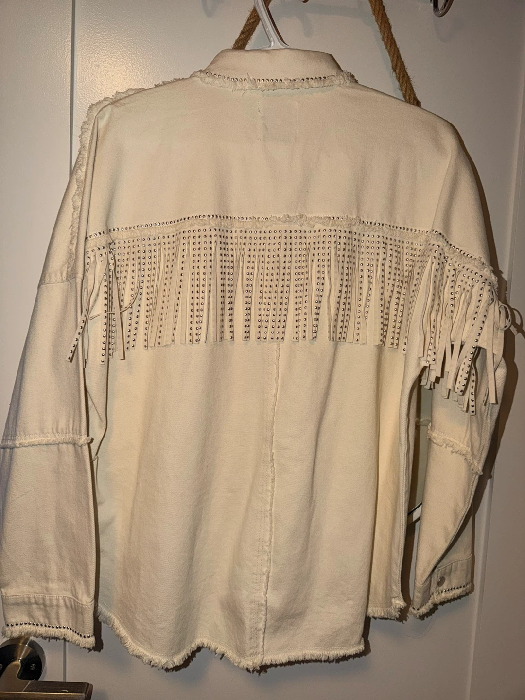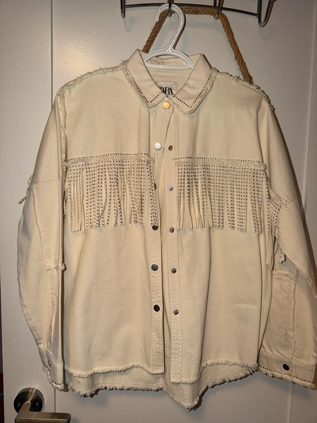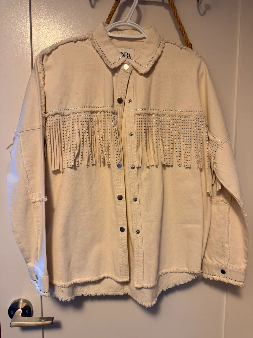 Selling a Zara fringe denim jacket in a size Small