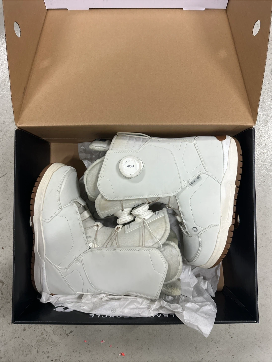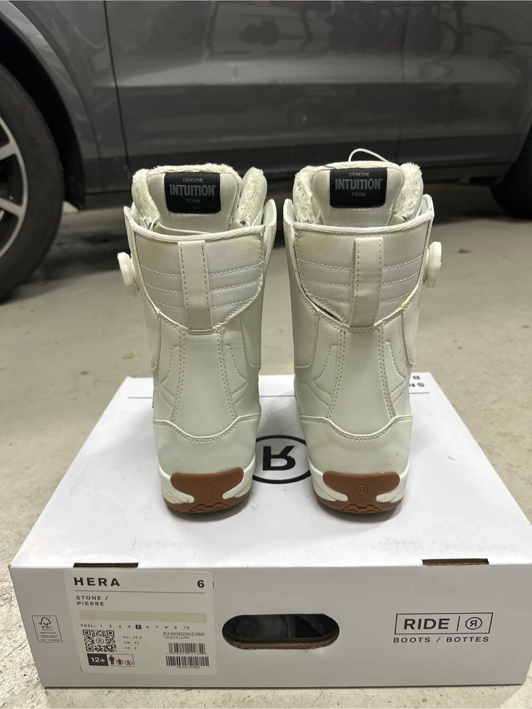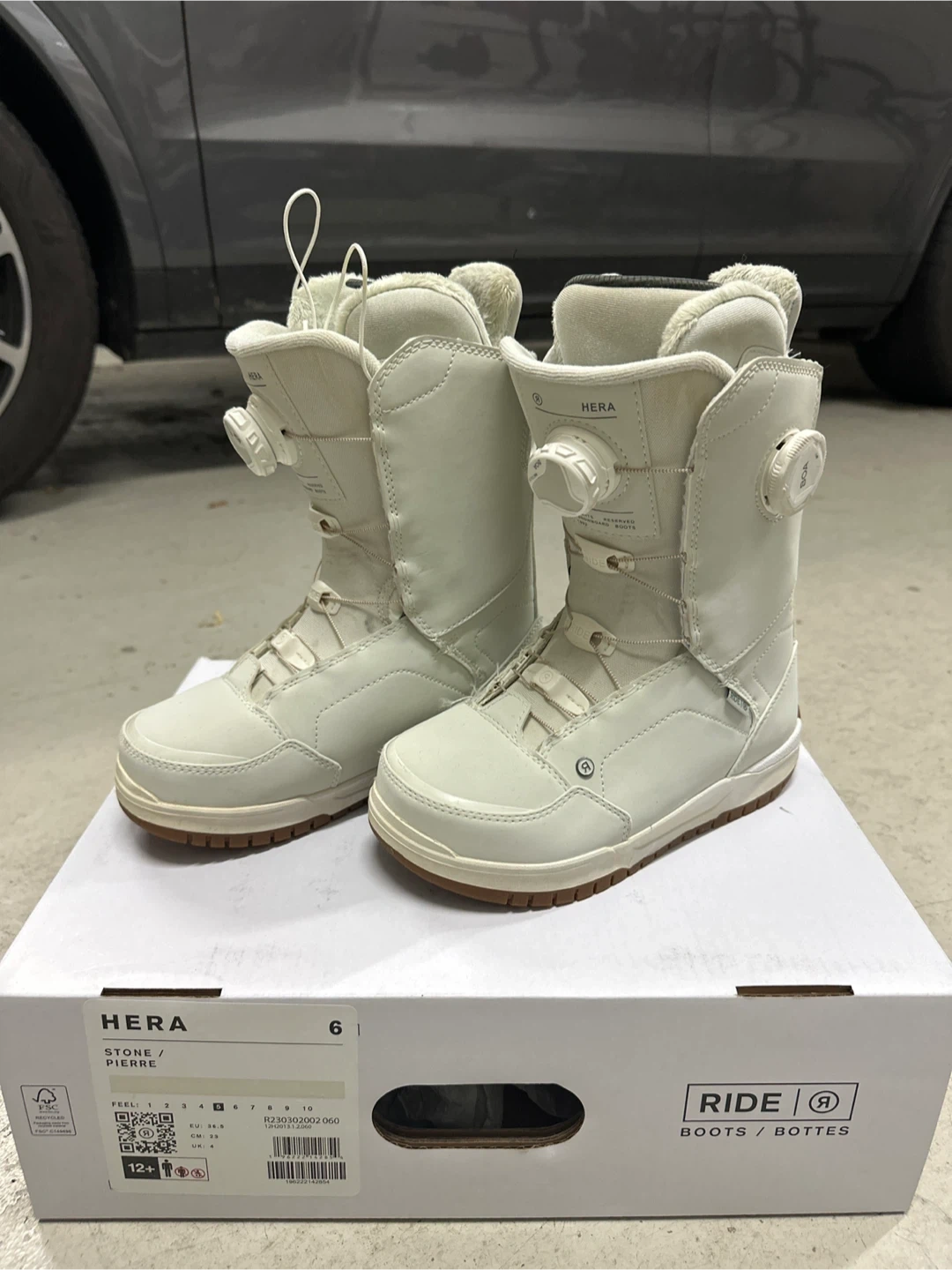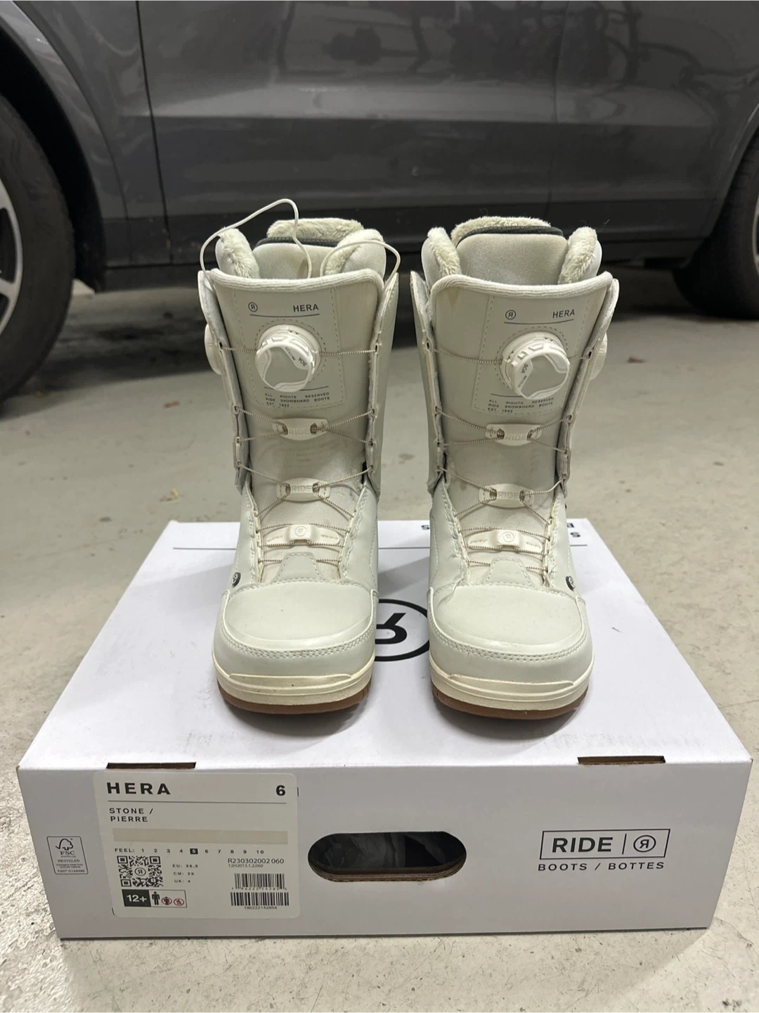 Selling a pair of Ride Hera snowboard boots in women's size 6! They're in great condition and come with the original box. These boots come in their beautiful Stone color and feature a faux fur lining, genuine intuition foam and a premium double BOA closure system for a secure and comfortable fit. Perfect for hitting the slopes this winter!