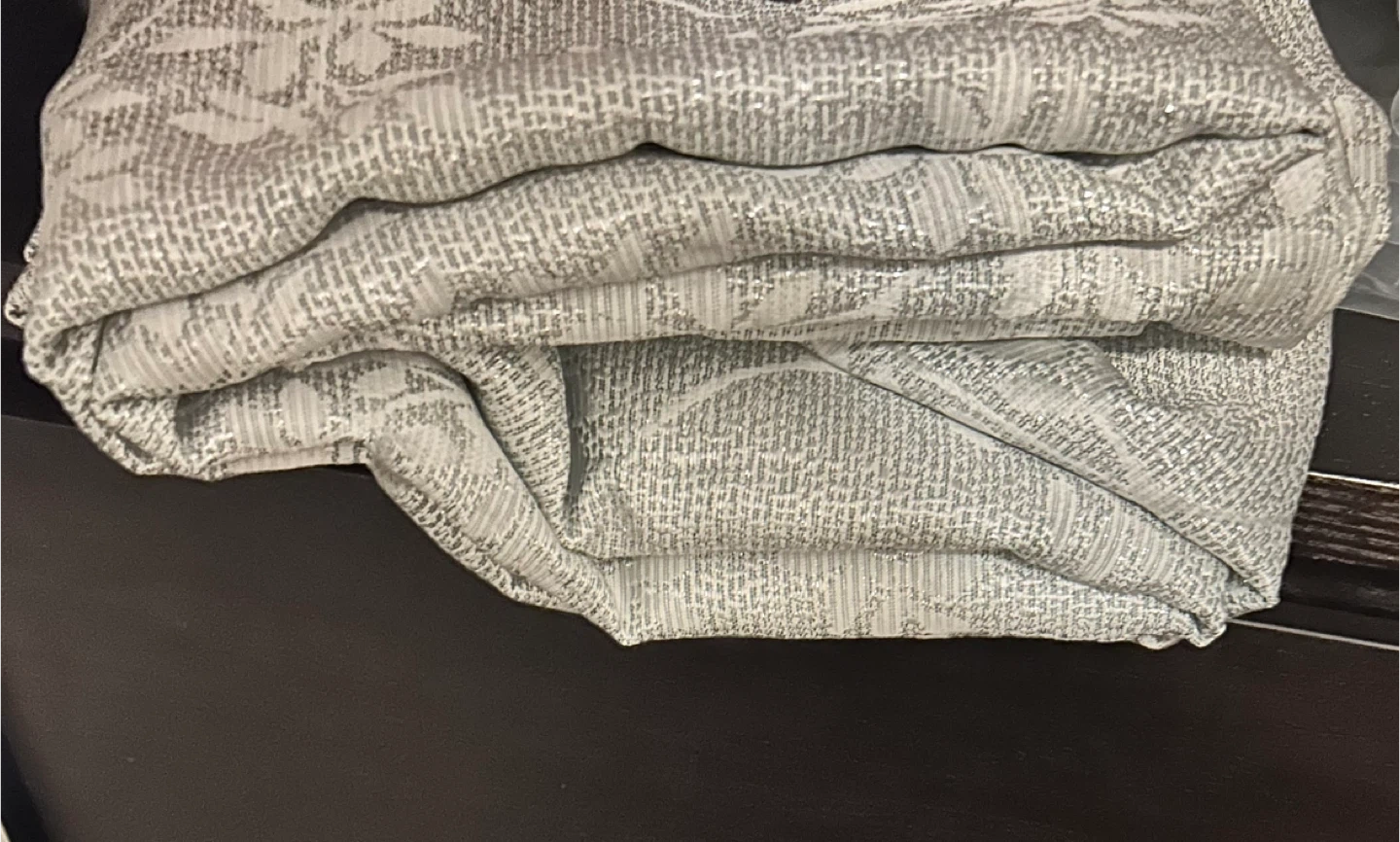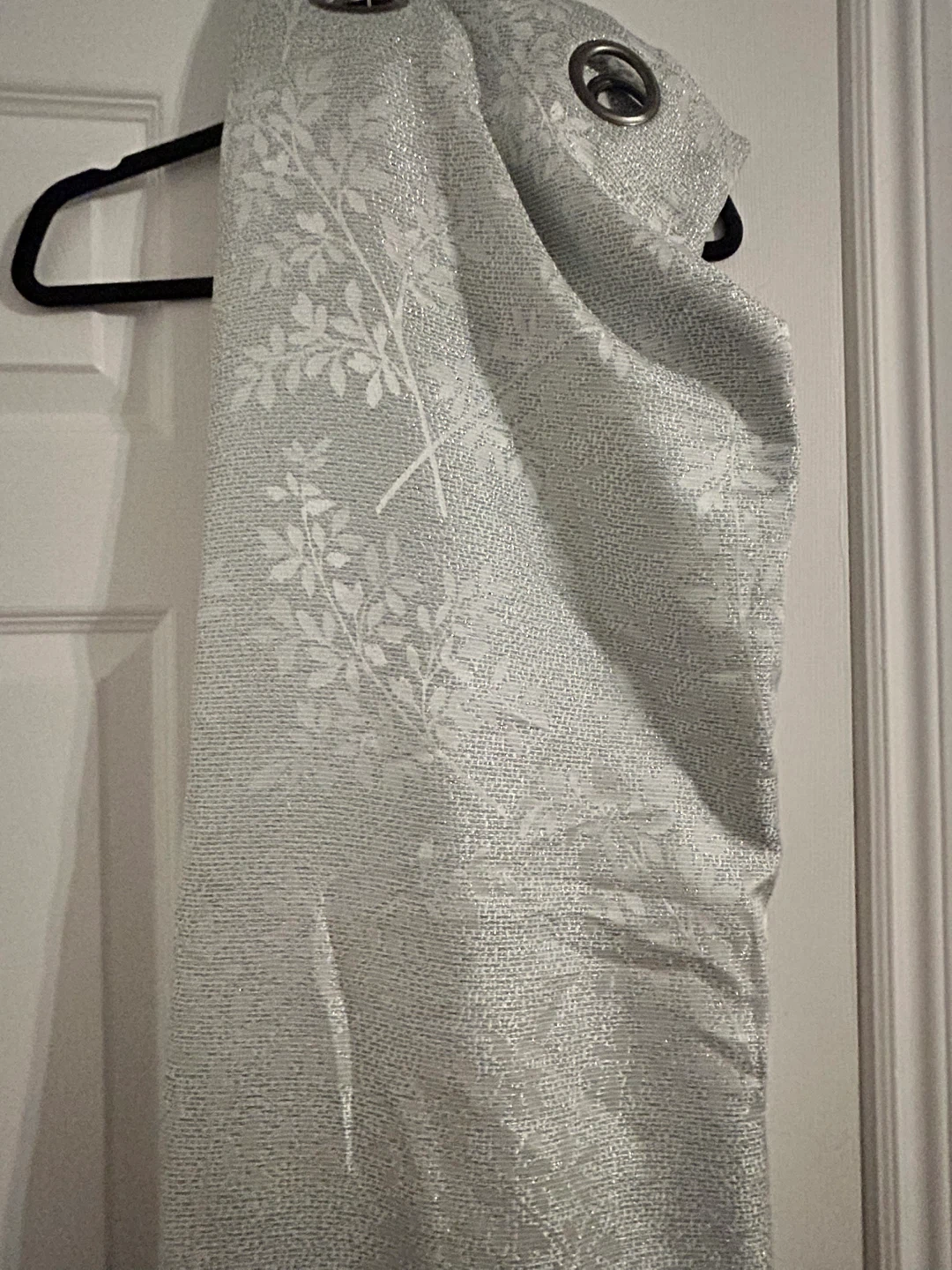 Here's a curtain panels in a lovely silver colour with a floral pattern. It's in great condition and ready to brighten up your space