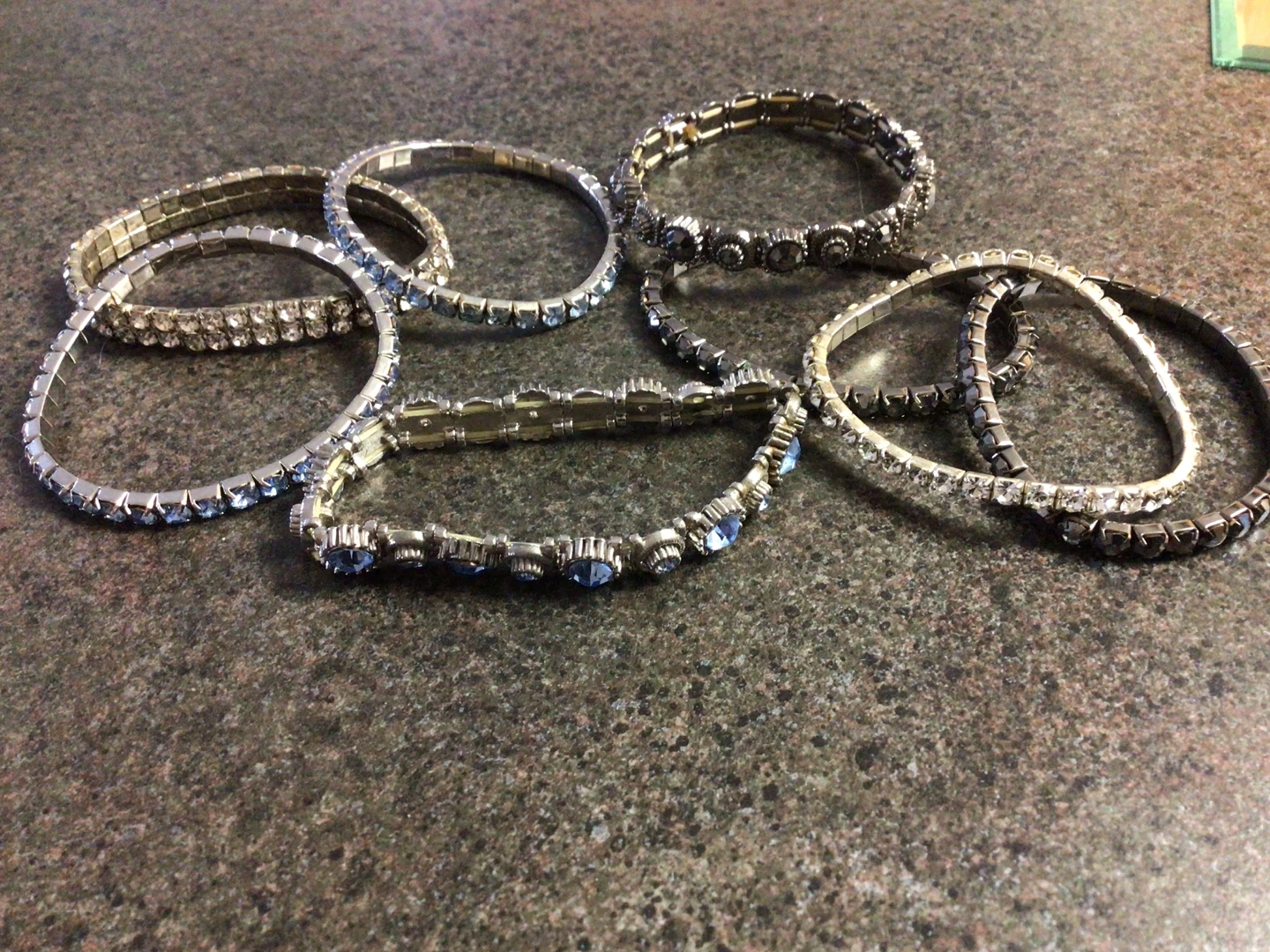 Selling a set of sparkly stretch bracelets! They come in a variety of colours including black, gold, blue and silver. Perfect for adding a bit of bling to any outfit