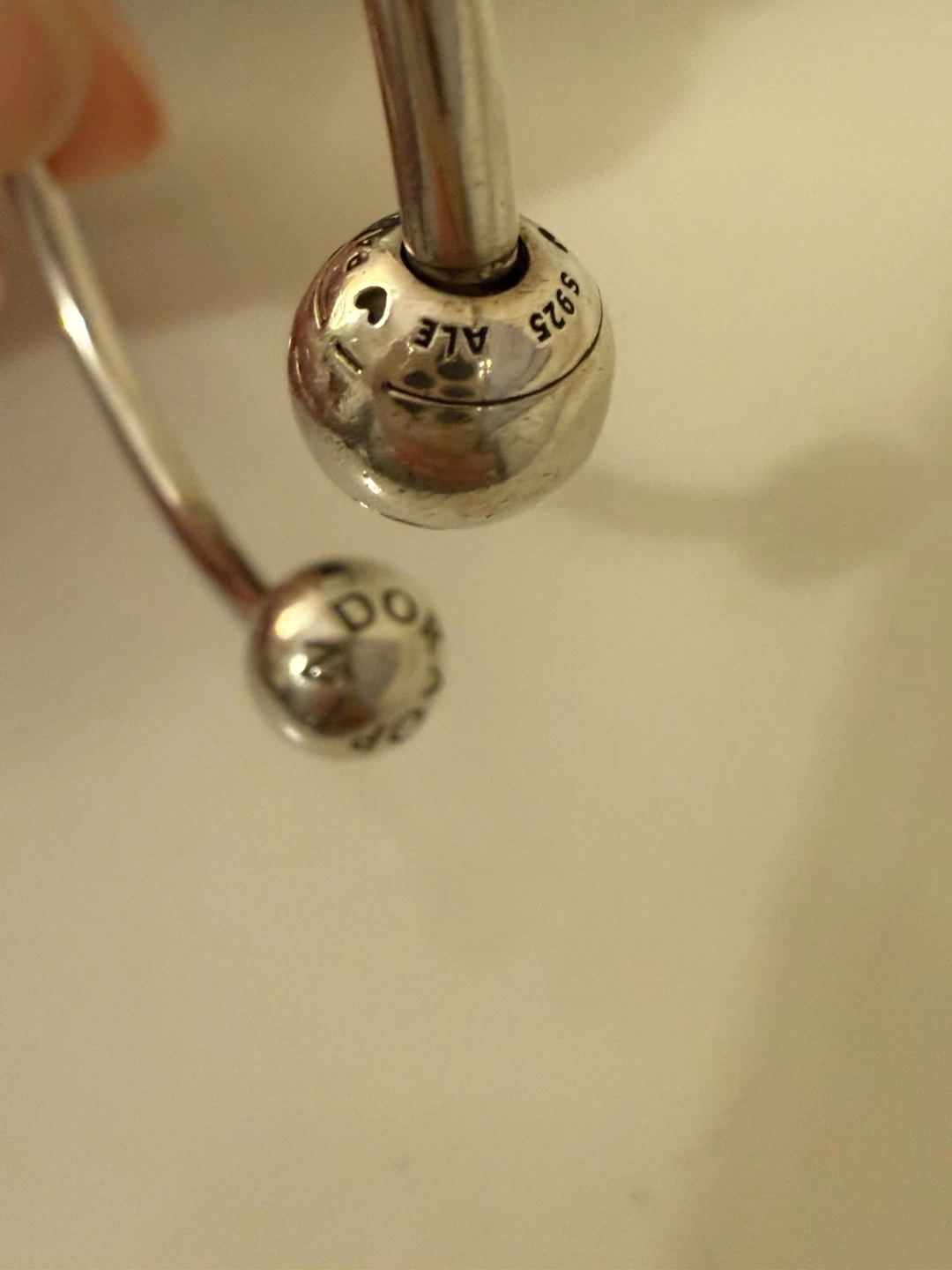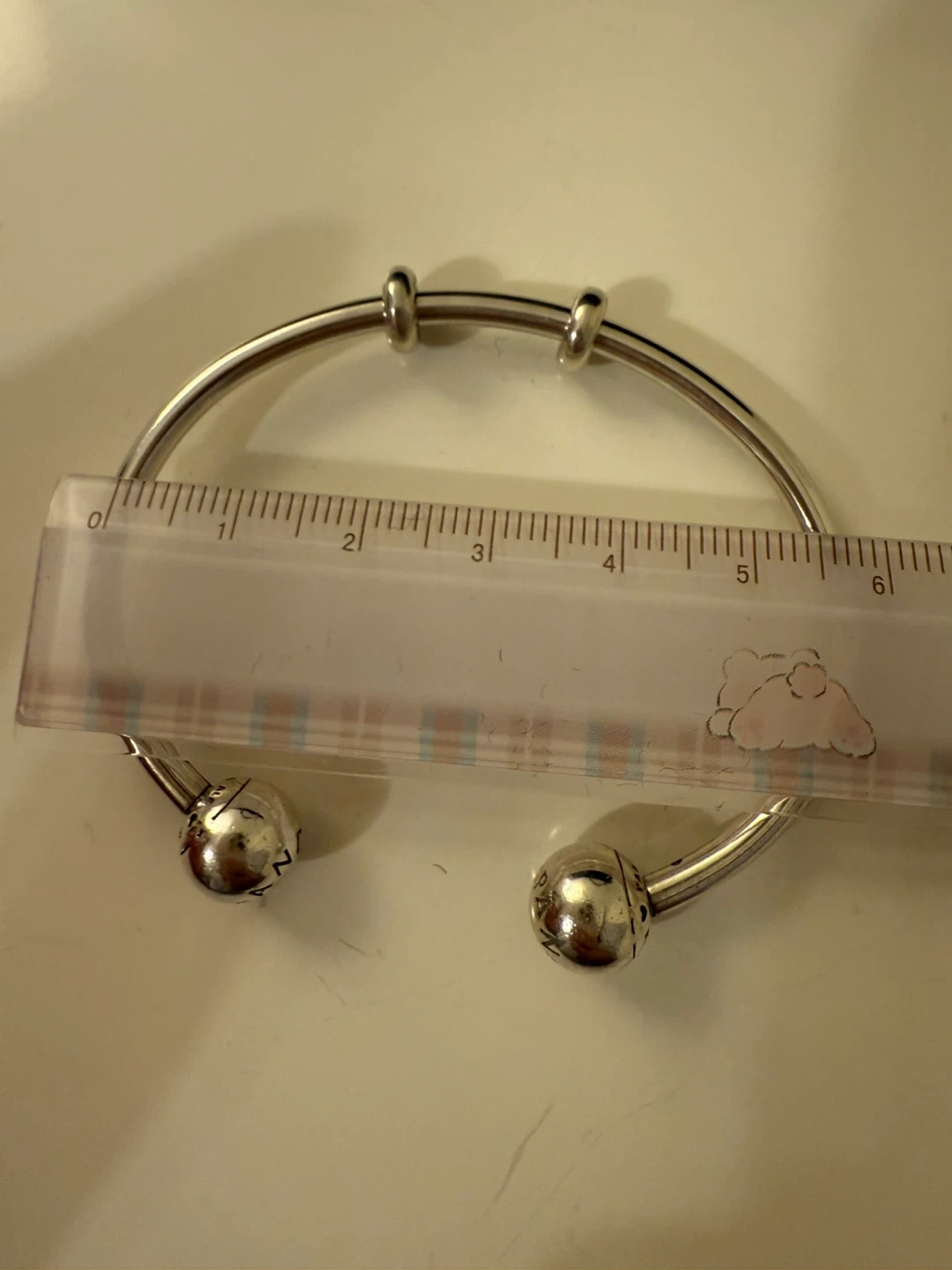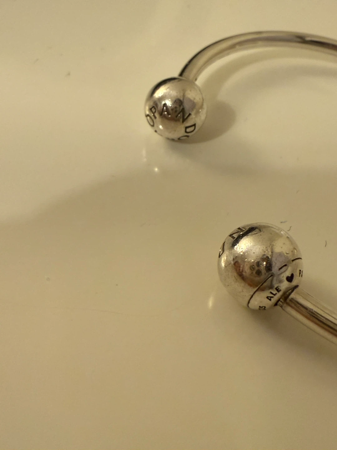 Selling a Pandora bangle bracelet. It's in good condition and ready for a new owner! The bracelet has the Pandora logo on the end pieces.