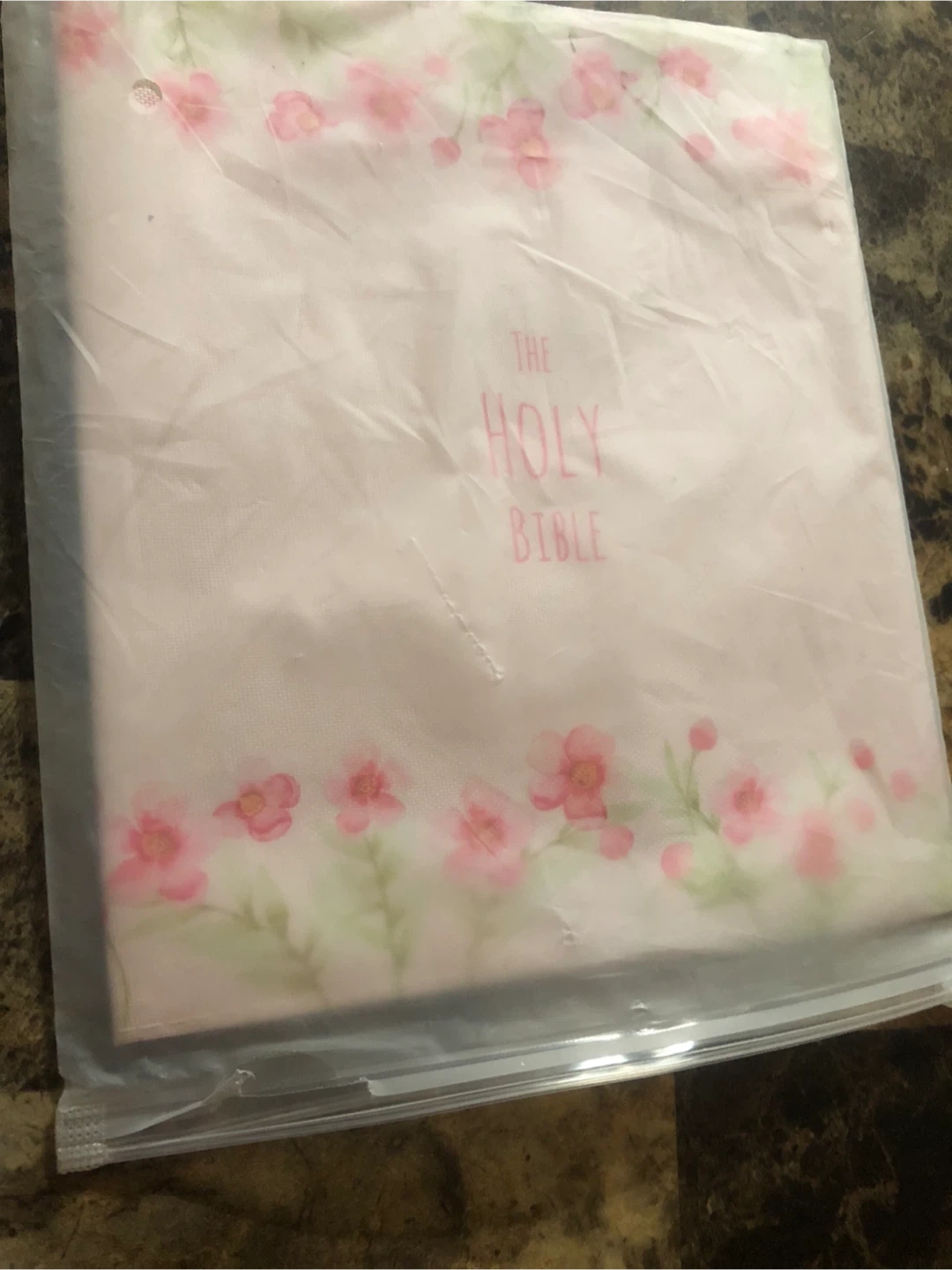 Selling a new pink Holy Bible cover with a floral design. The cover measures approximately 9 inches in width and 10 inches in height. It’s in great condition and ready to protect your Bible. The greatest gift you can give to someone.