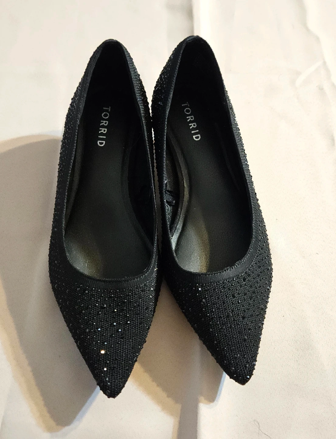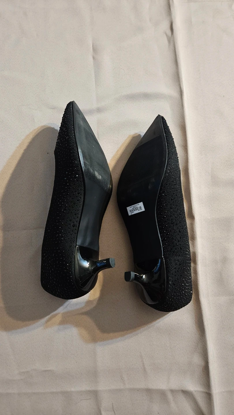 Selling a pair of Torrid black pointed toe kitten heels in size 9.5 wide. These stylish heels are perfect for adding a touch of elegance to any outfit