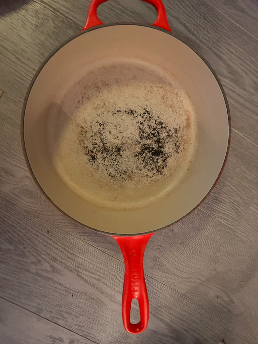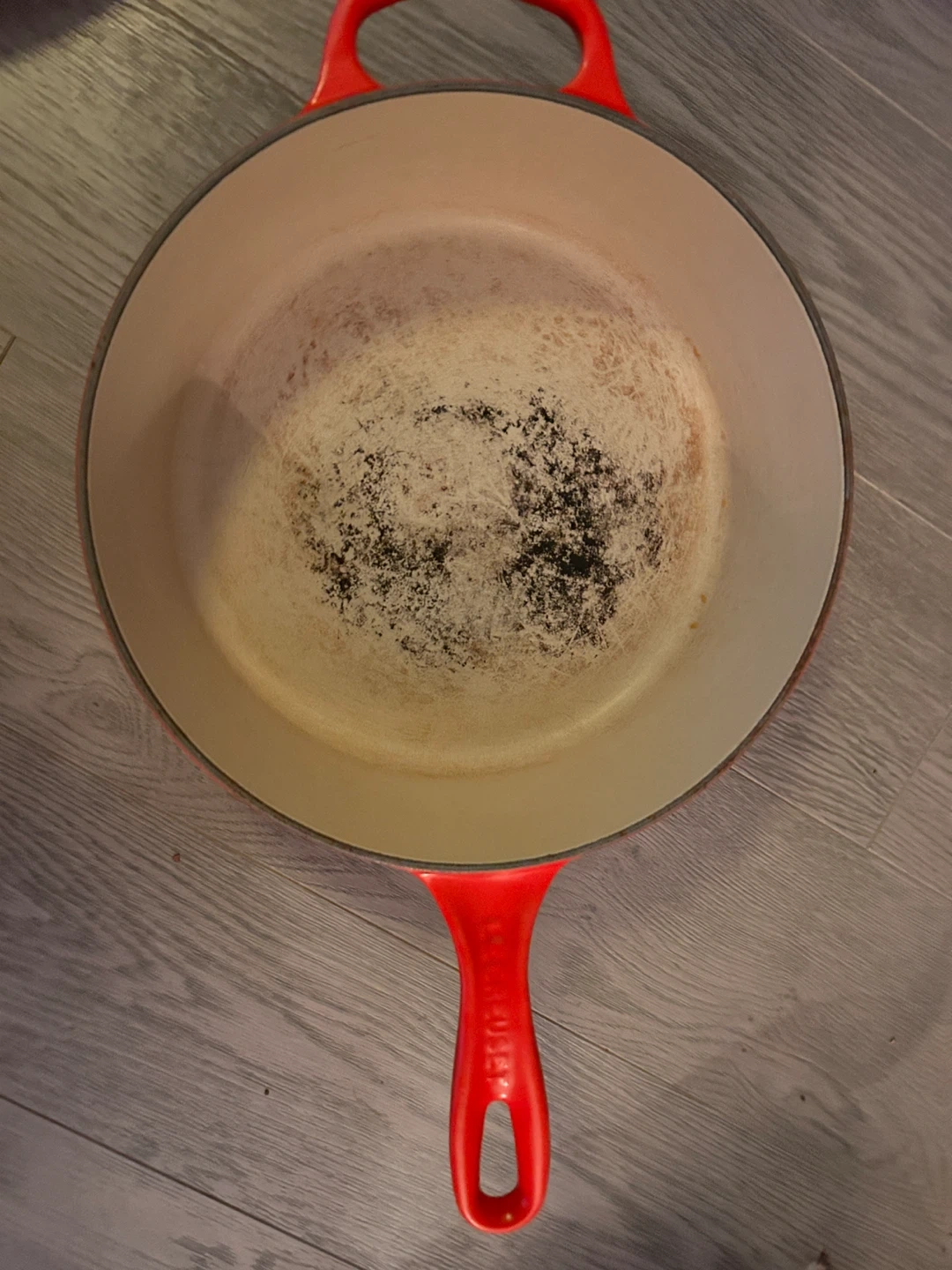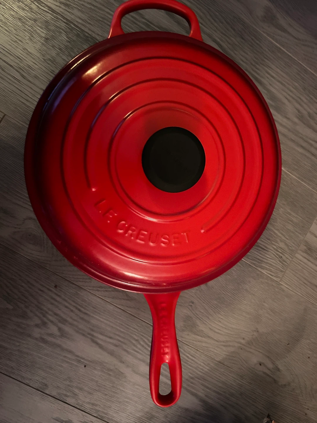 Selling a well-loved Le Creuset cast iron skillet in red. It's a durable and classic piece for any kitchen. Perfect for searing, frying, and baking, this skillet distributes heat evenly for consistent cooking results. It does show signs of use, but it's still got plenty of life left!