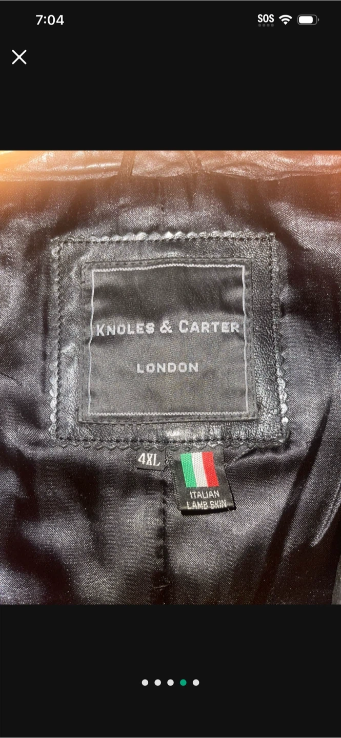 Selling a Knoles & Carter London black leather jacket. It is size 4XL and made of Italian lamb skin.