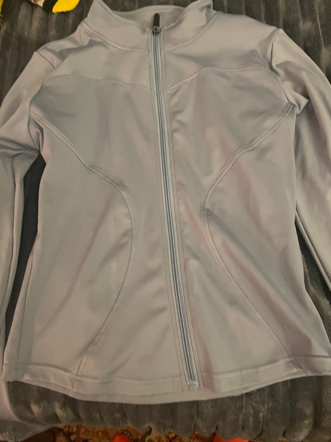 Selling a light blue athletic jacket. It's in great condition and perfect for workouts or casual wear! The material is lightweight and comfortable.
