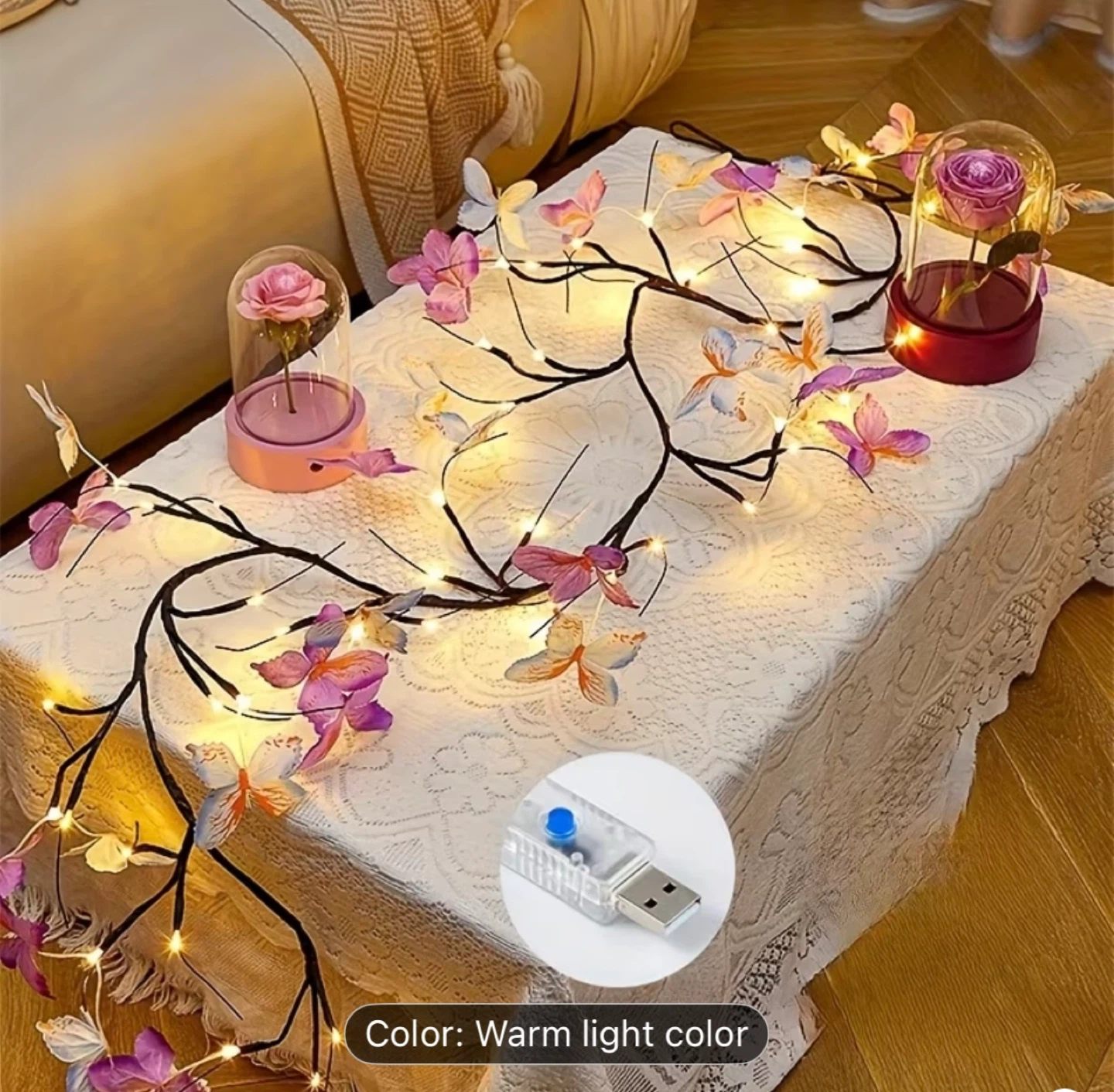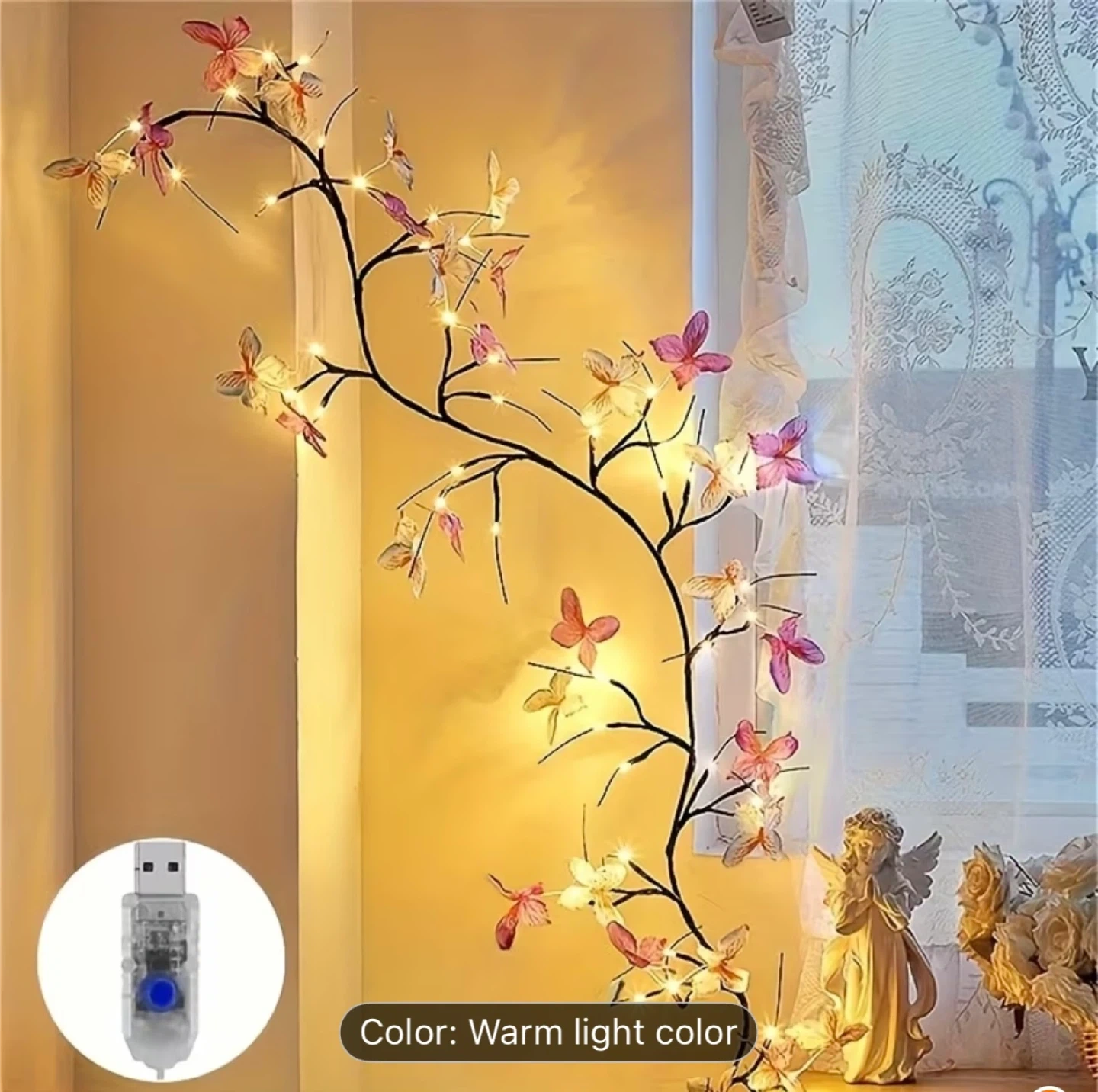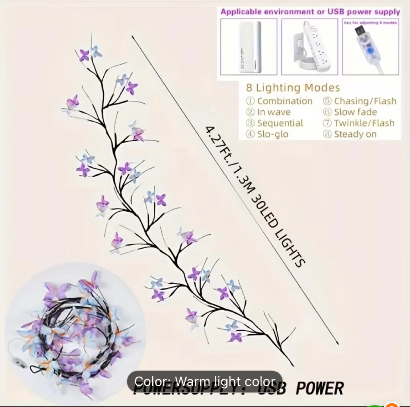Add a touch of whimsy to your space with these butterfly vine string lights! They feature a warm light colour and can be powered by USB. There are 8 different lighting modes to choose from to create the perfect ambiance. The vine is 4.27 ft/1.3M long and includes 30 LED lights.