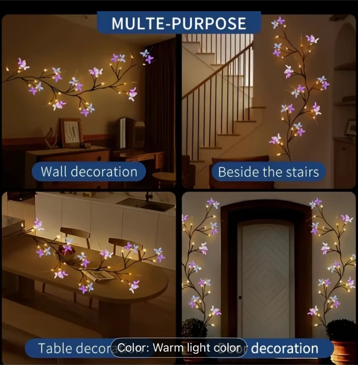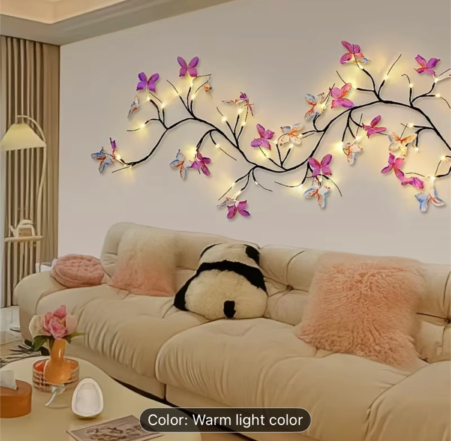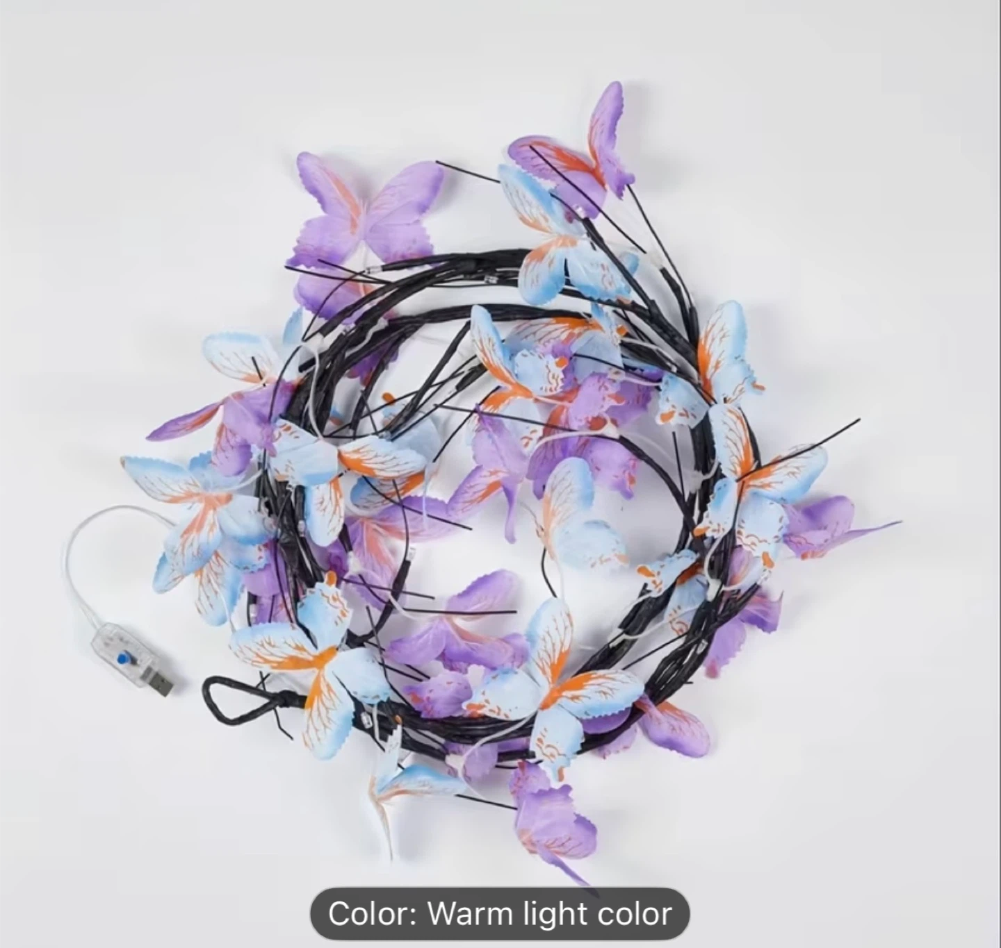 Add a touch of whimsy to your space with these butterfly vine string lights! They feature a warm light colour and can be powered by USB. There are 8 different lighting modes to choose from to create the perfect ambiance. The vine is 4.27 ft/1.3M long and includes 30 LED lights.