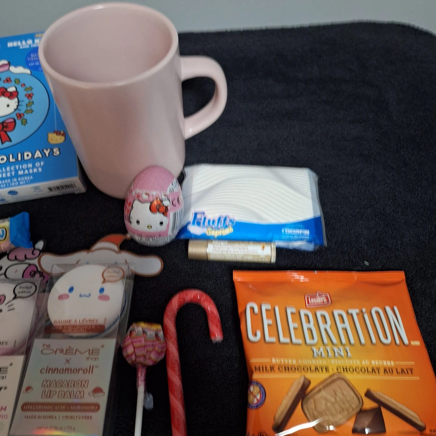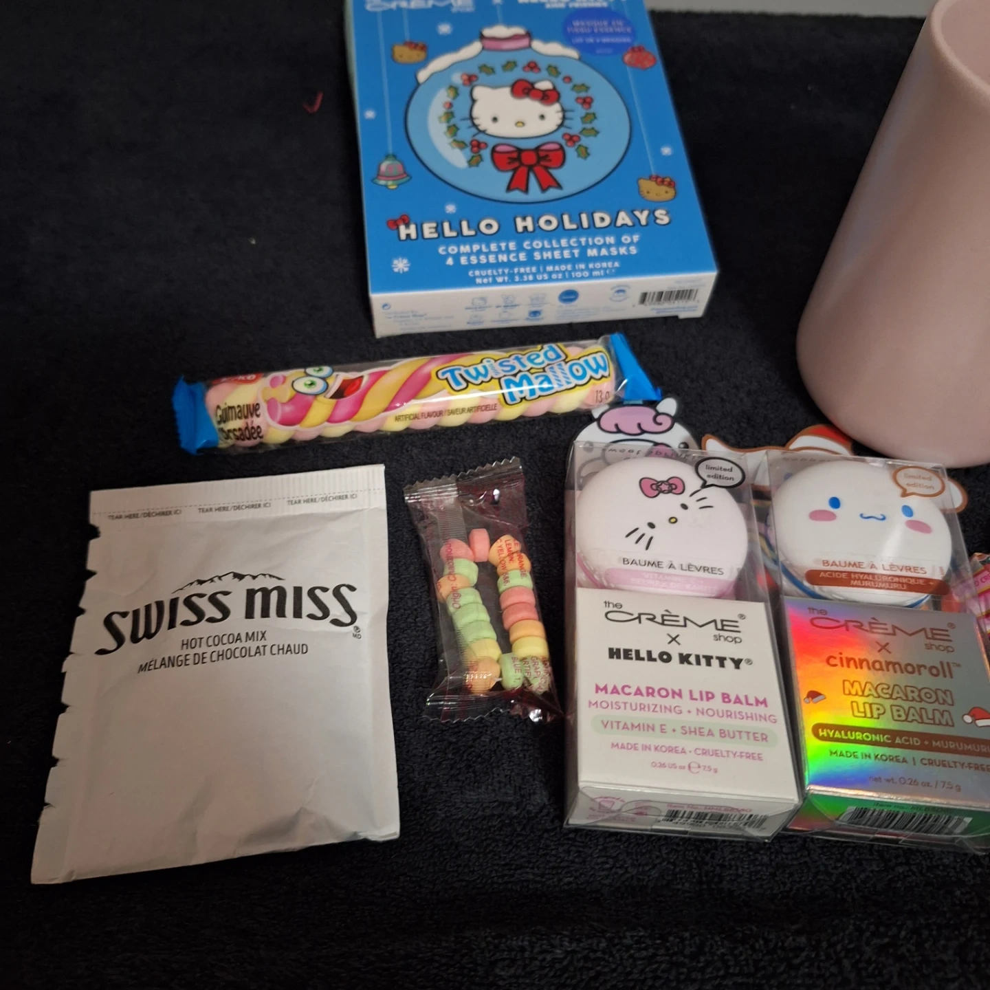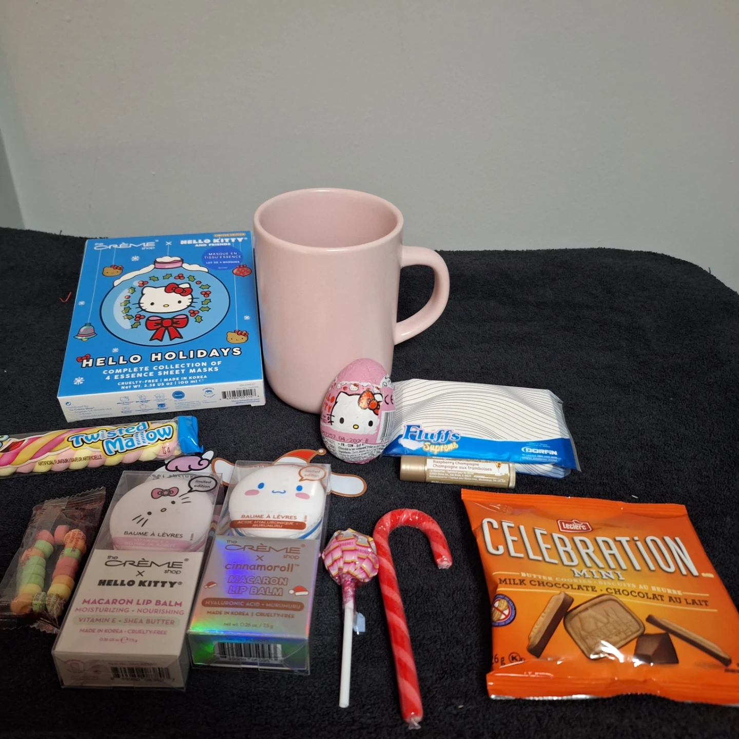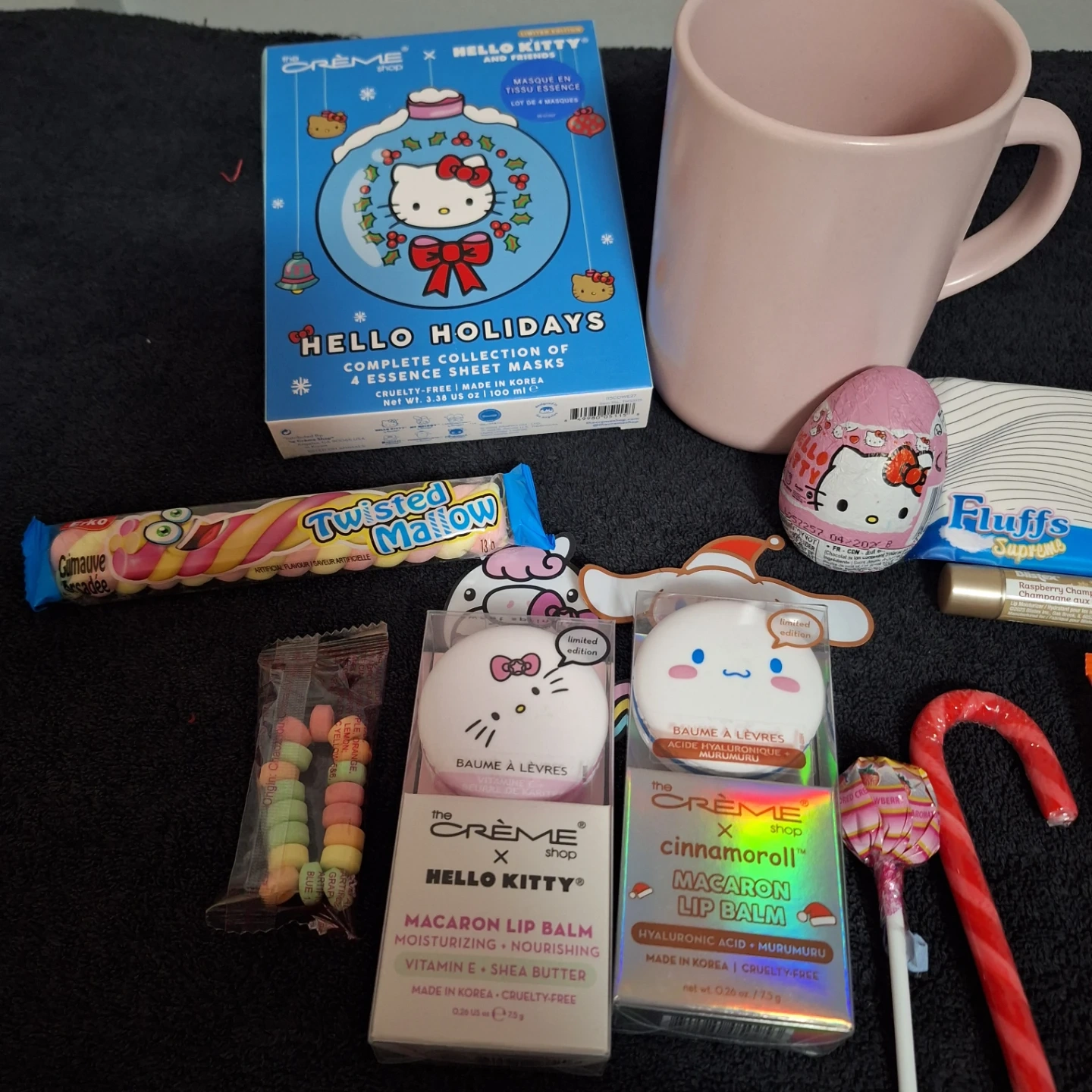 Selling a cute Hello Kitty and Friends gift set! Includes items from The Crème Shop, such as lip balm and sheet masks, along with some tasty treats. Perfect as a gift for someone special or a treat for yourself