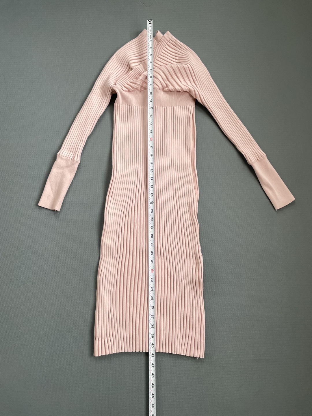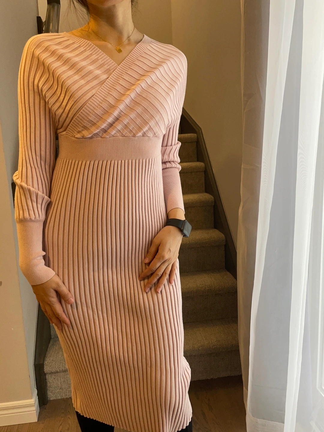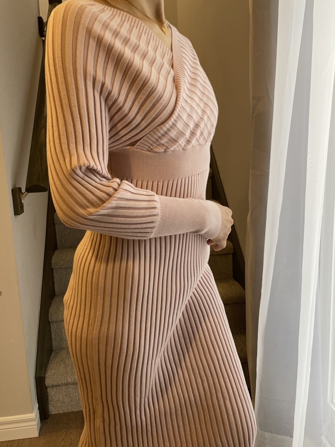 Pink Ribbed Knit Midi Dress