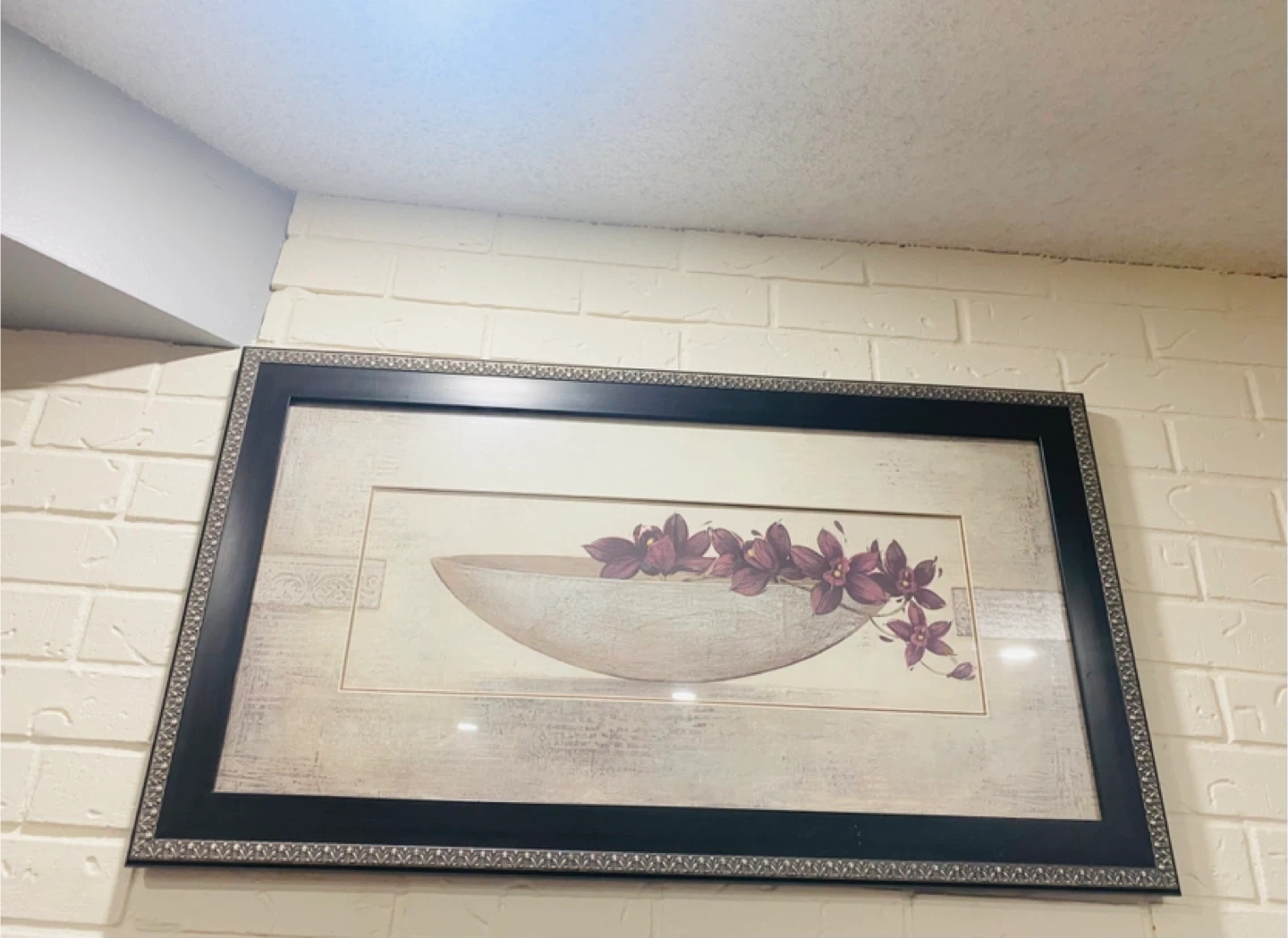 A lovely framed piece of wall art featuring a floral design. It's in great shape and ready to add a touch of elegance to your space