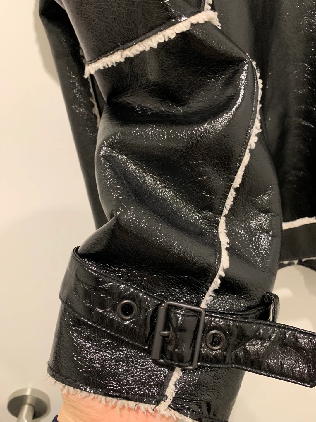 Kenneth Cole Black Faux Leather Sherpa Jacket
