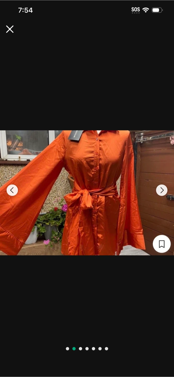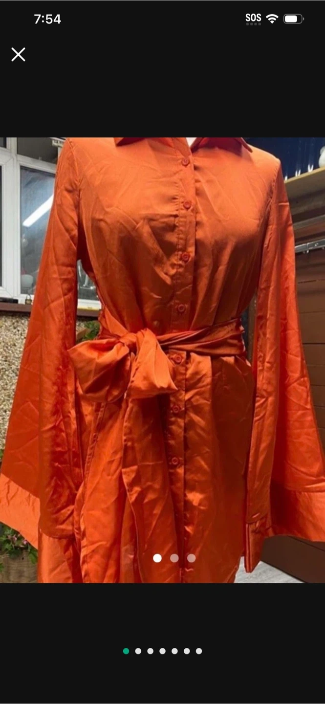 Here's a vibrant orange dress from PrettyLittleThing! It features a stylish tie waist and long sleeves. Perfect for adding a pop of color to your wardrobe!