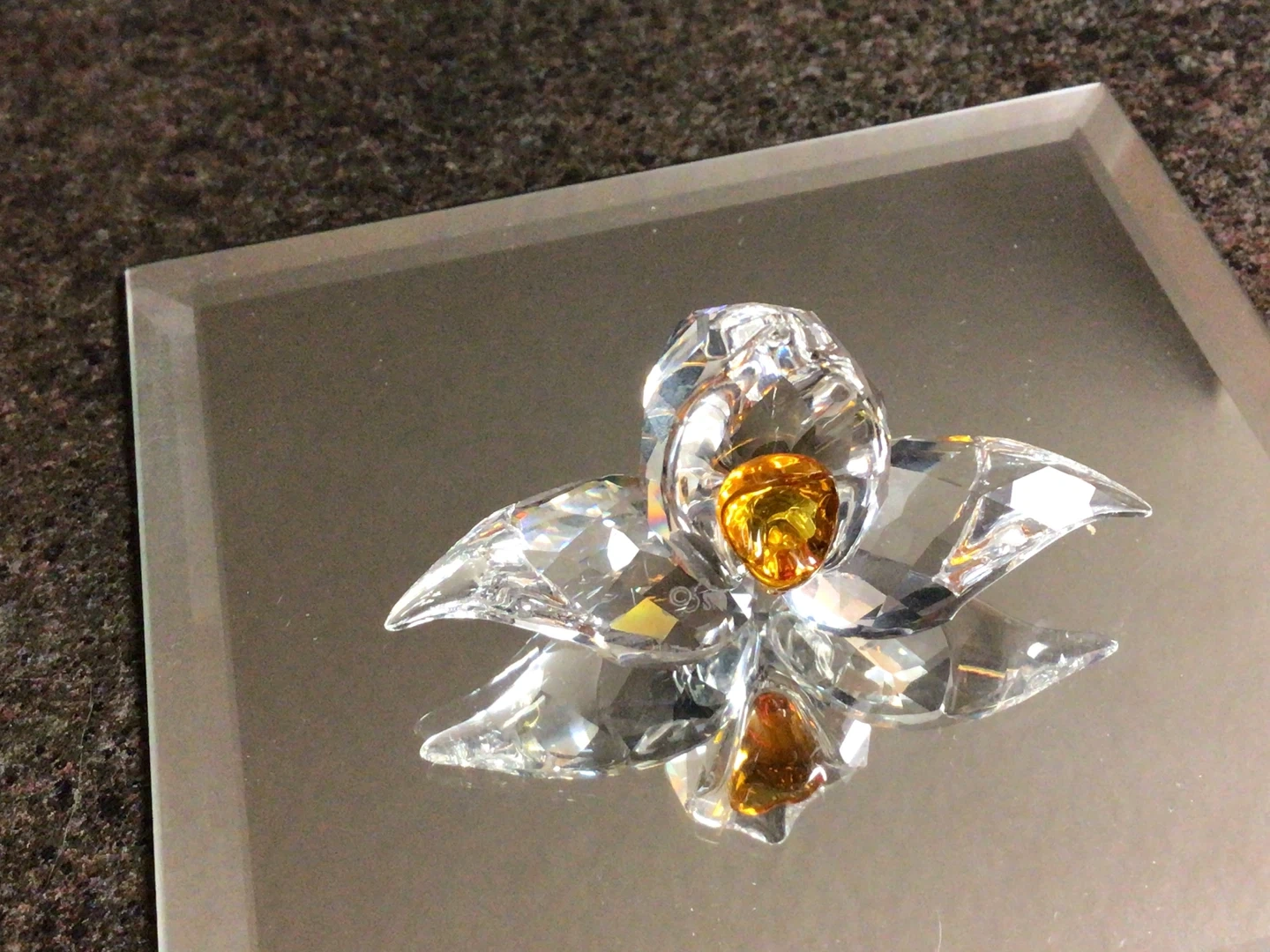 Here's a beautiful Swarovski crystal flower figurine! It's in great condition and ready to add a touch of sparkle to your home