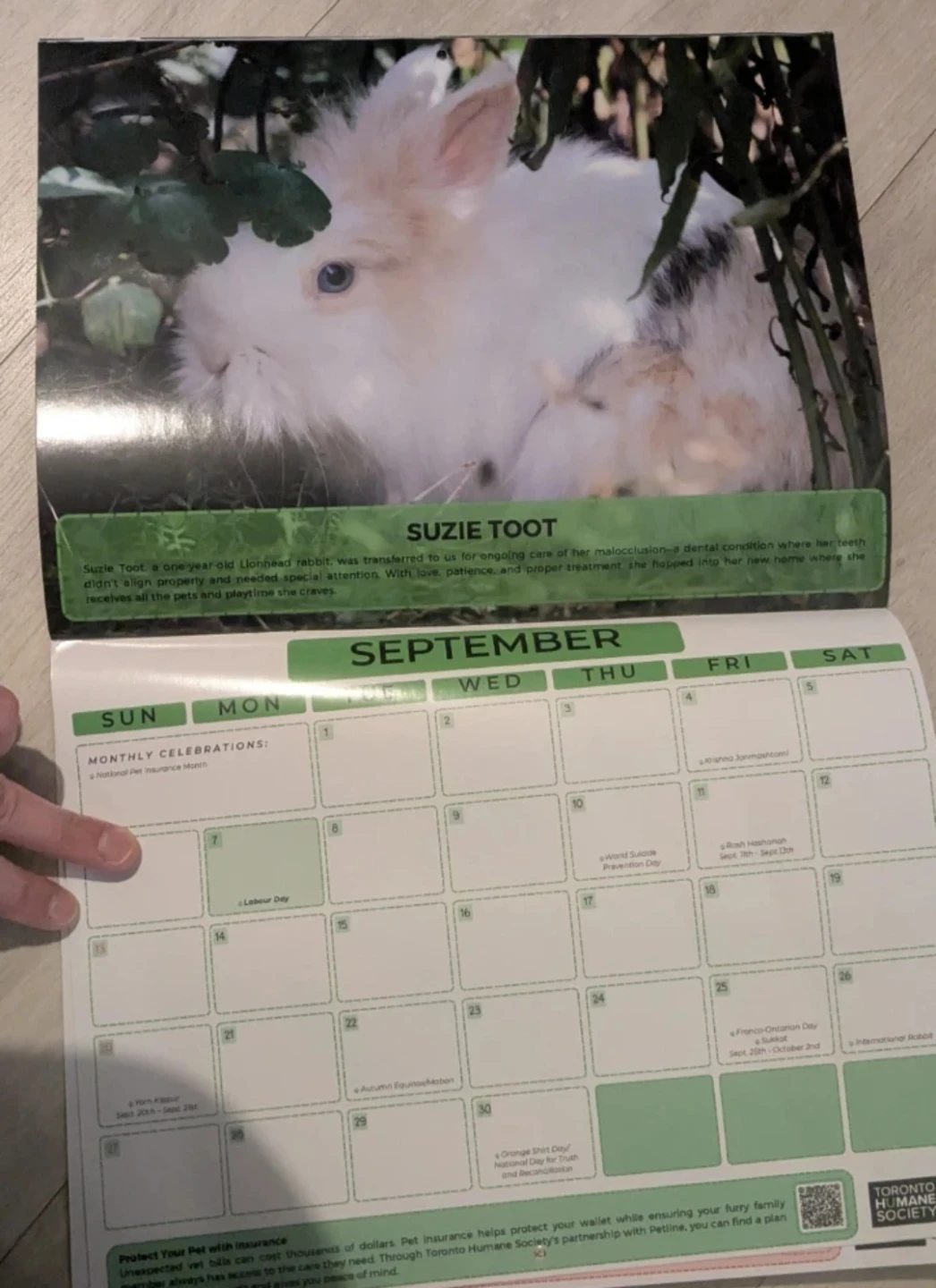 Toronto Humane Society 2026 Calendar featuring adorable animals! Great for planning your year and includes a few coupons throughout.