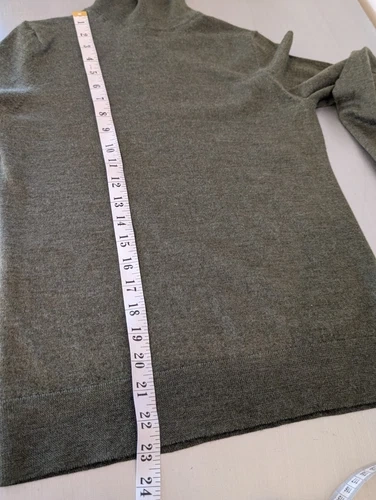 Lord Taylor Extra Fine Merino Turtleneck - Forest Green SZ Large. Made in Cambodia. Hand wash in cold water. RN 123455. Merino Woolen Turtleneck - Green. Elevate your winter wardrobe with this chic green roll neck. Crafted from lightweight, cozy fine merino wool, it's the perfect layer to add warmth and style to your outfits. **Please note: The color of the sweater in the photos may appear slightly different due to lighting and camera settings. The actual color is forest green.** Excellent pre owned condition.