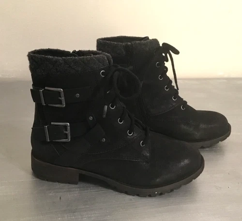 Crown Vintage Revival black bootie size 8 M. Side zipper and front lacing. Like new condition. Bikercore Biker Moto