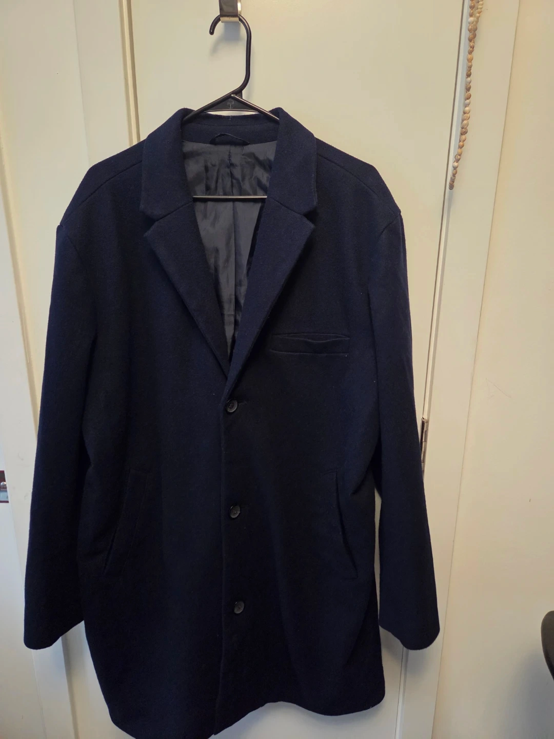 Here's a gently used Old Navy coat in size XL. It's a navy blue colour and made with a wool blend. Perfect for fall!