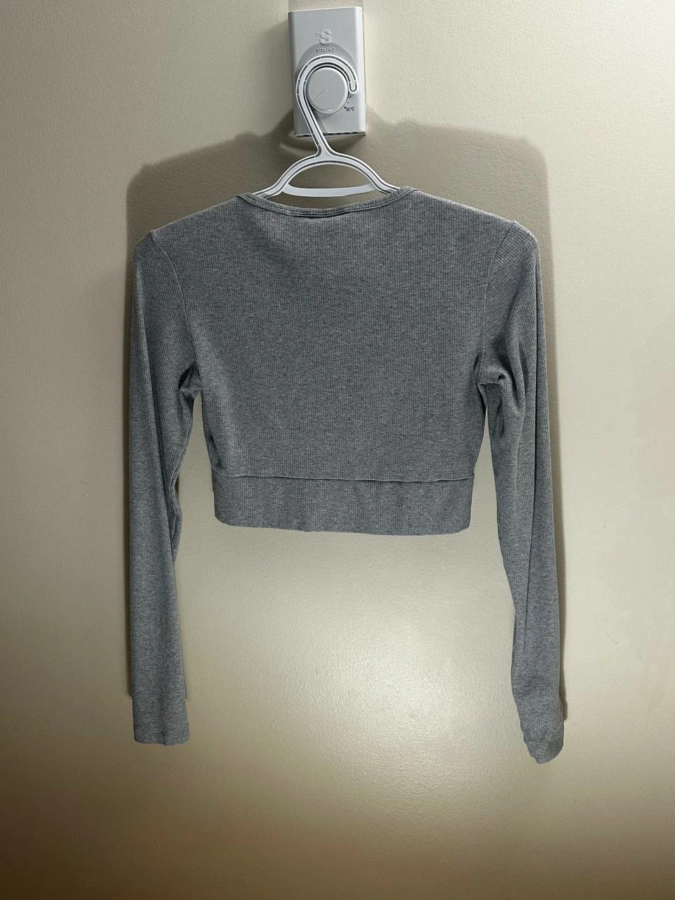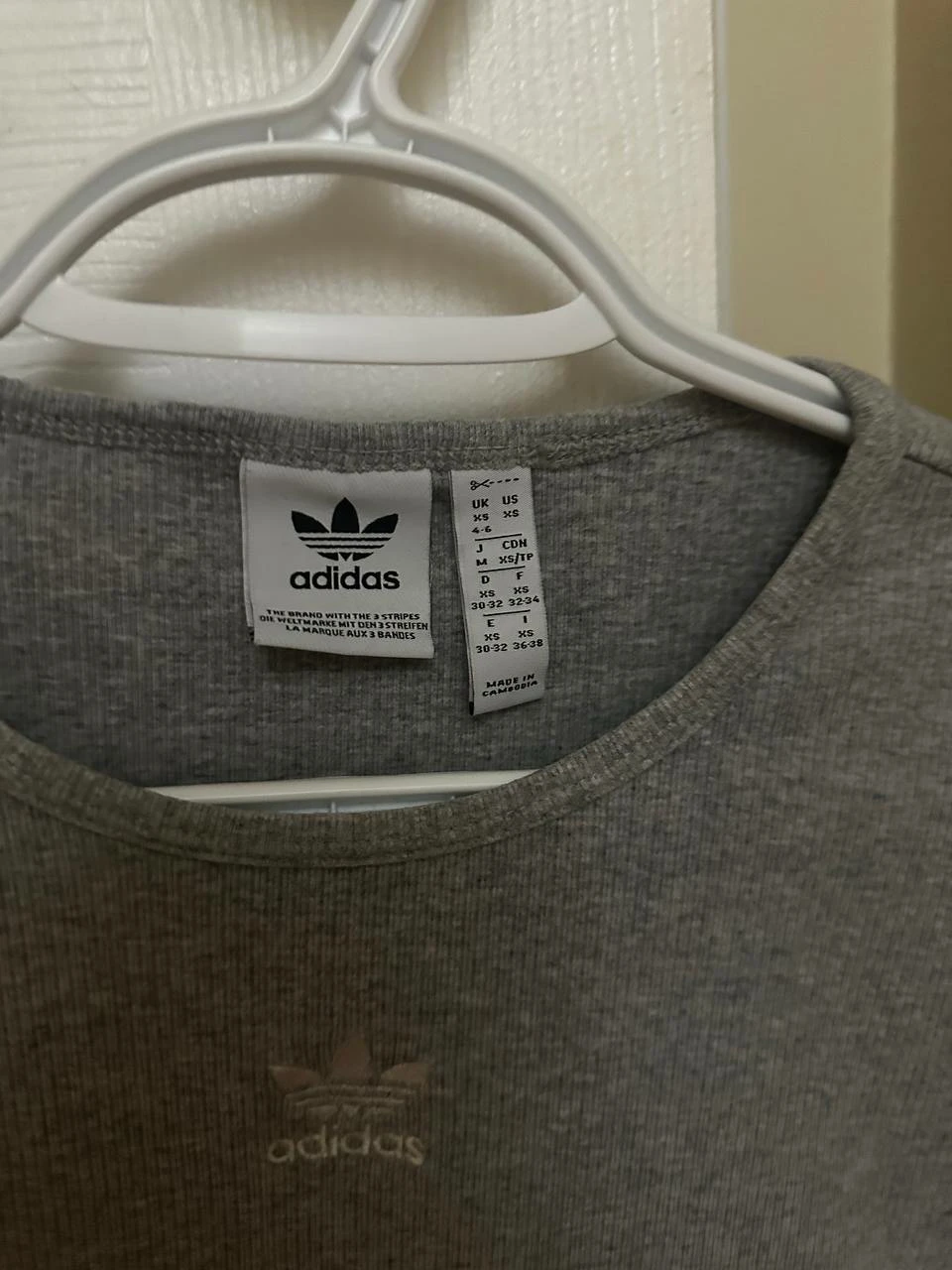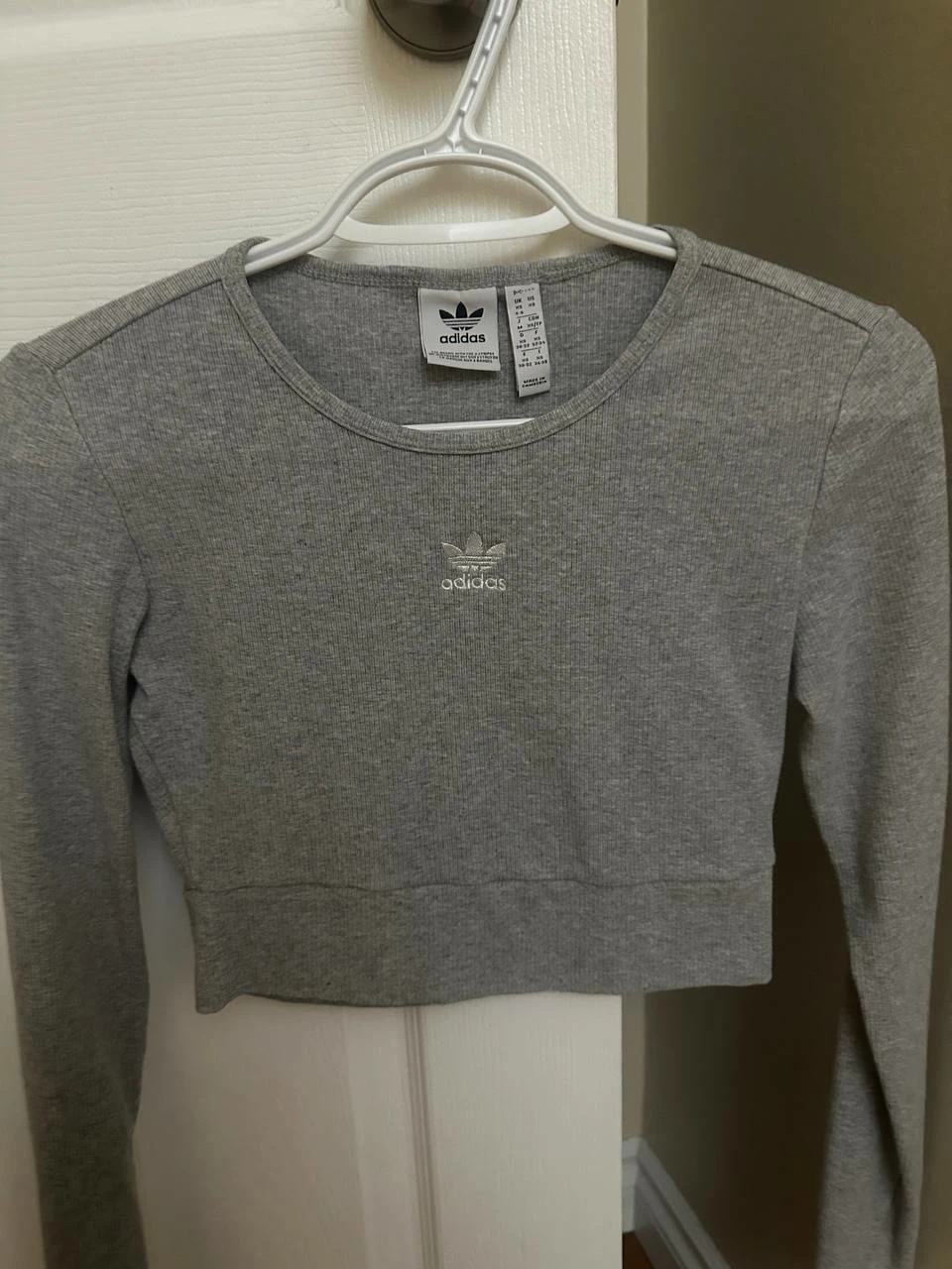 Selling an Adidas long sleeve crop top in size XS. It's a nice grey colour and in great condition! Perfect for layering or wearing on its own! It would also be a super trendy gift for Christmas🎄🎄🎊!!!