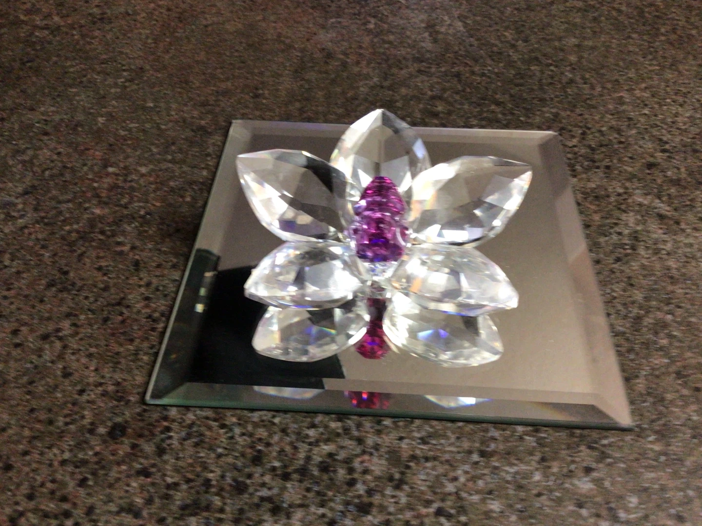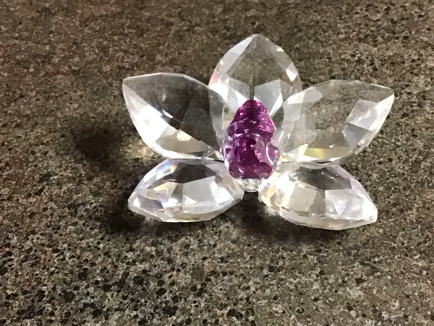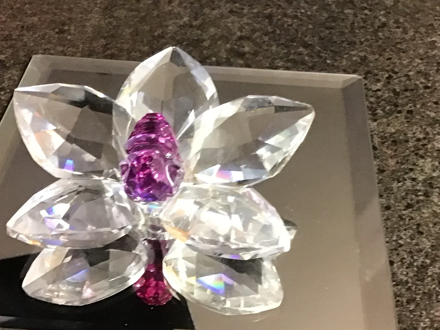 A lovely crystal flower figurine! It features clear crystal petals and a purple crystal centre. Perfect for adding a touch of sparkle to any room