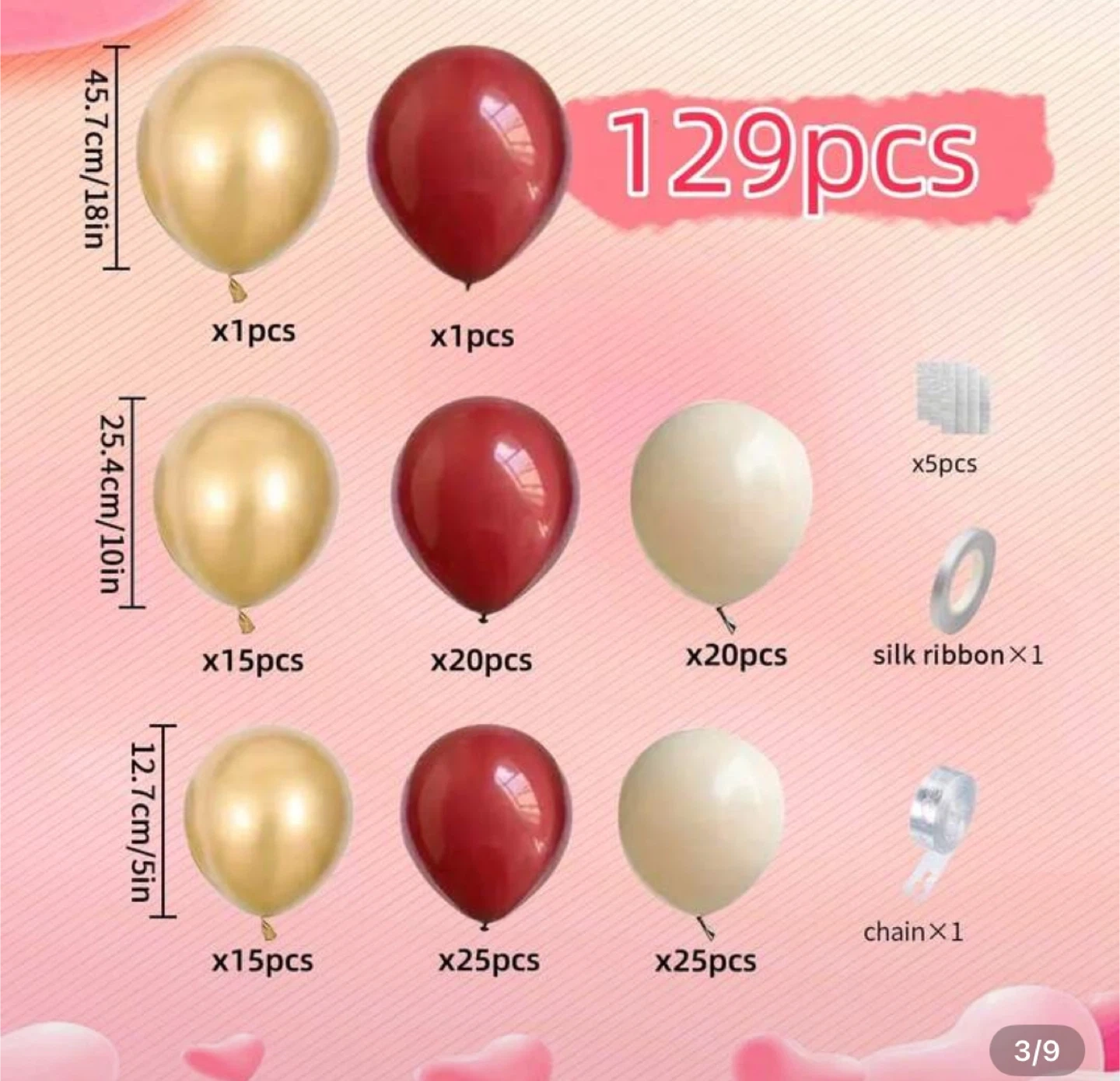 129 pcs Balloon Arch Kit - Red, Gold, White
