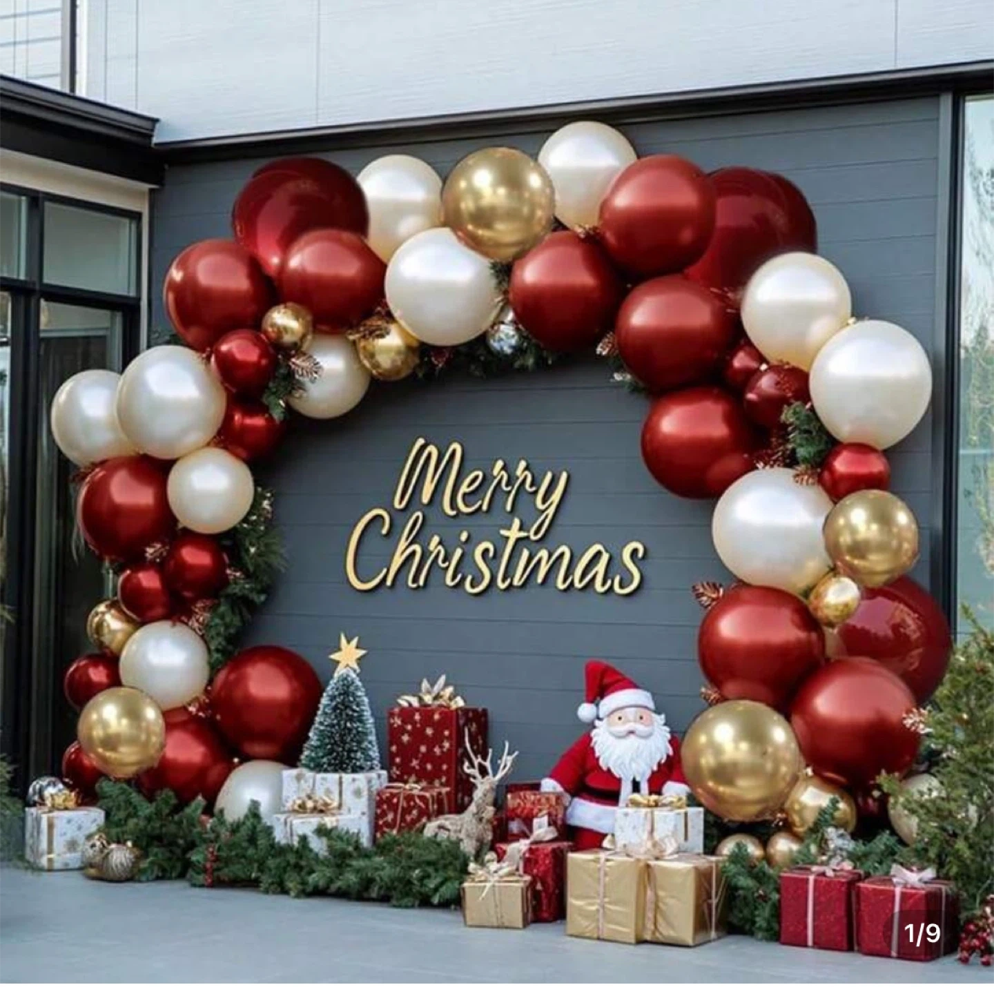 Get ready to add a festive touch to your next celebration with this 129-piece balloon arch kit! The kit includes a mix of red, gold, and white balloons in various sizes (18in, 10in, 5in), silk ribbon, and chain to help you create a stunning balloon display