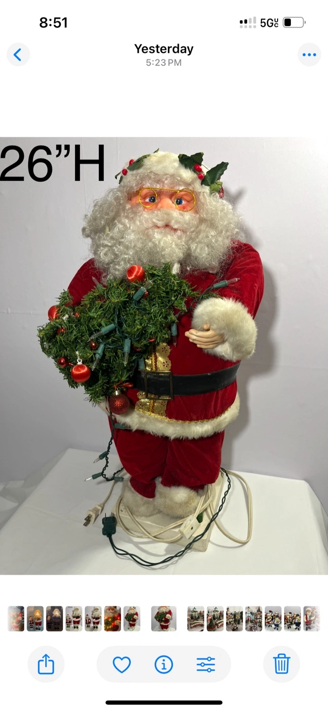 Selling a festive animated Santa Claus figure, perfect for holiday decor! This Santa stands 26 inches tall and is in great condition. He's ready to bring some Christmas cheer to your home.