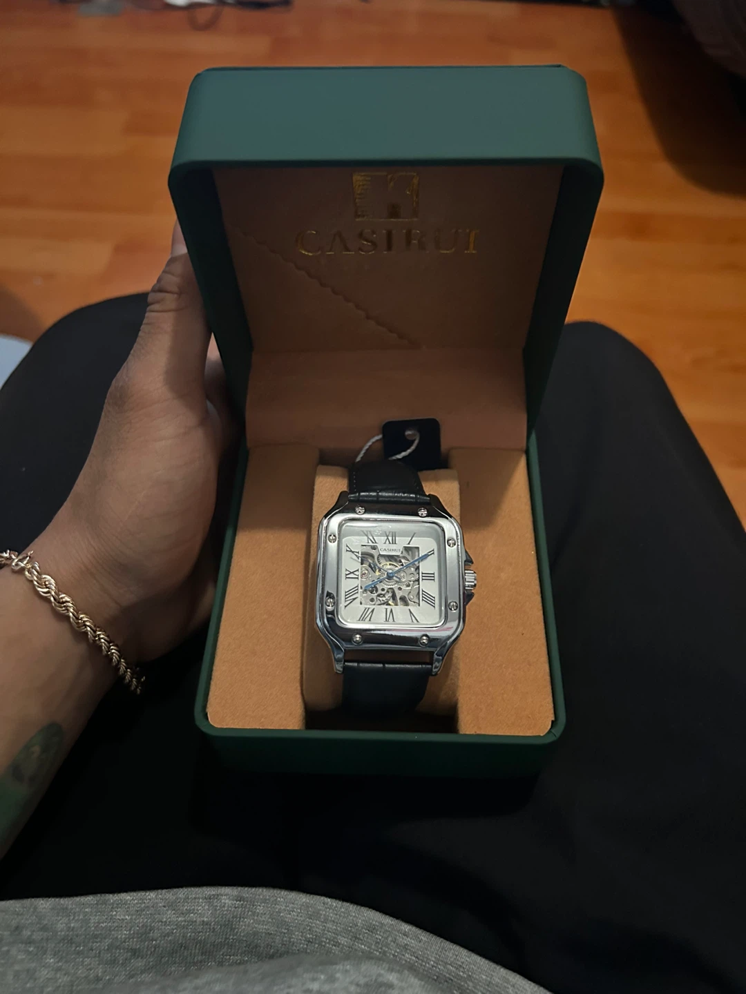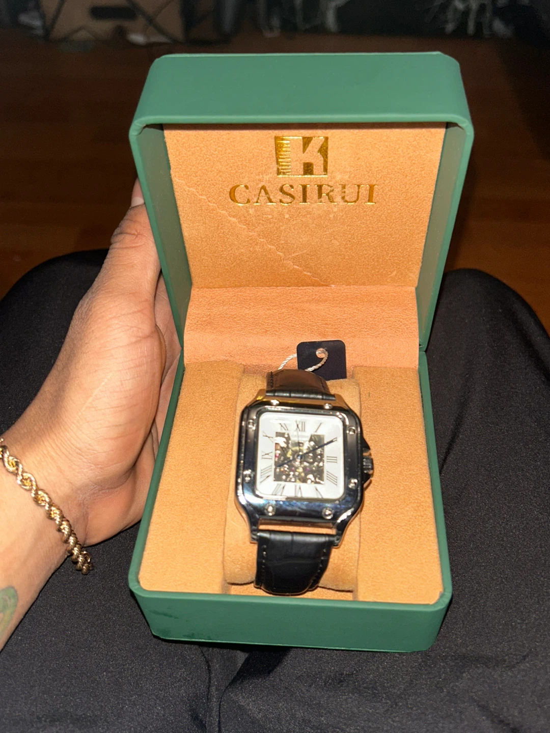 ⌚ CASIRUI WITHE – Luxury Automatic Watch CASIRUI watch with visible automatic movement (skeleton), black square design case and leather strap. ✨ Sophisticated design ⚙️ Automatic movement 🖤 Elegant and modern style 📦Includes original CASIRUI case Ideal for daily use or special gift🎁 📦 New product 💎 Excellent presentation 📍 Immediate delivery Price: $___