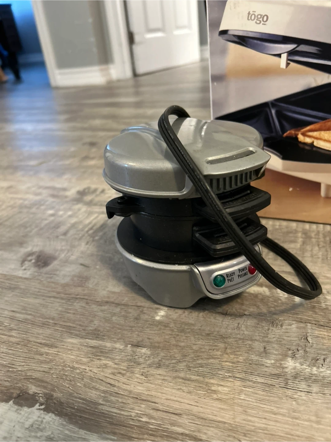 Selling a Togo sandwich maker in good condition! It's perfect for making quick and easy sandwiches at home. It features indicator lights for 'Ready' and 'Power'.