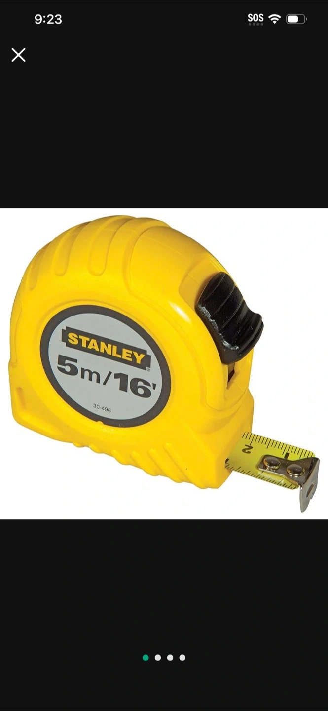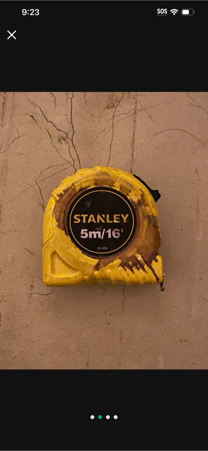 Selling a Stanley tape measure, marked with 5m/16' on the casing. It shows some signs of wear, as you can see in the photos. Still works great for measuring!
