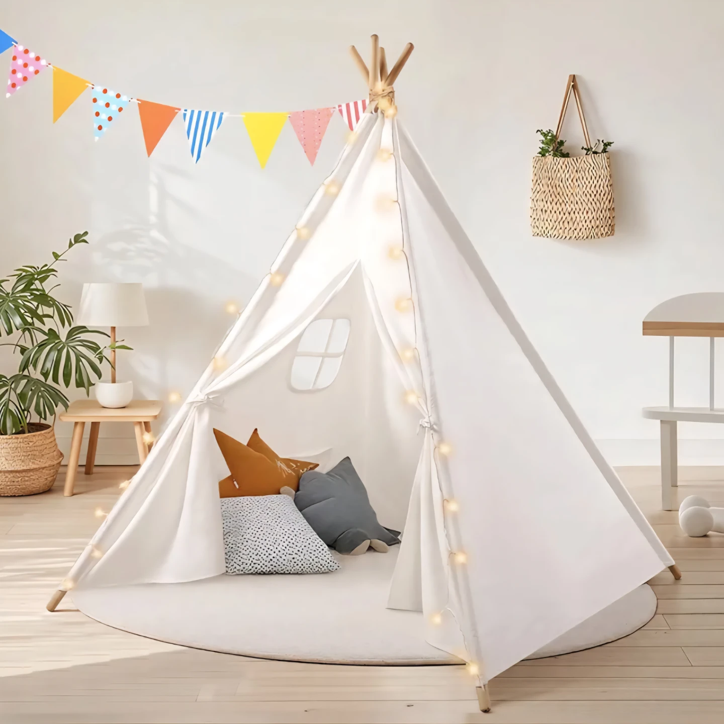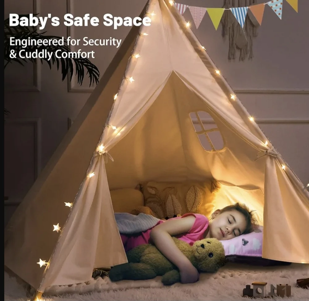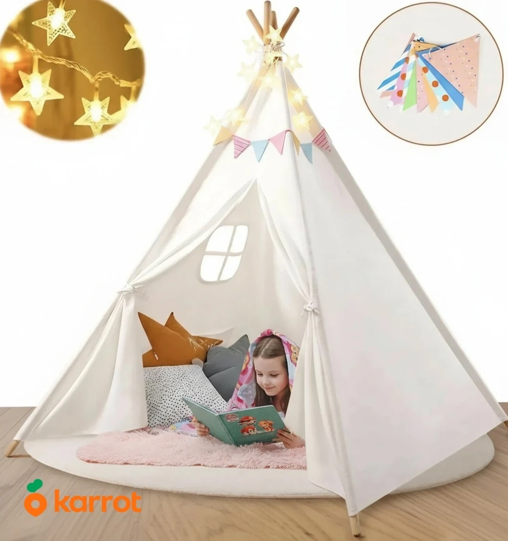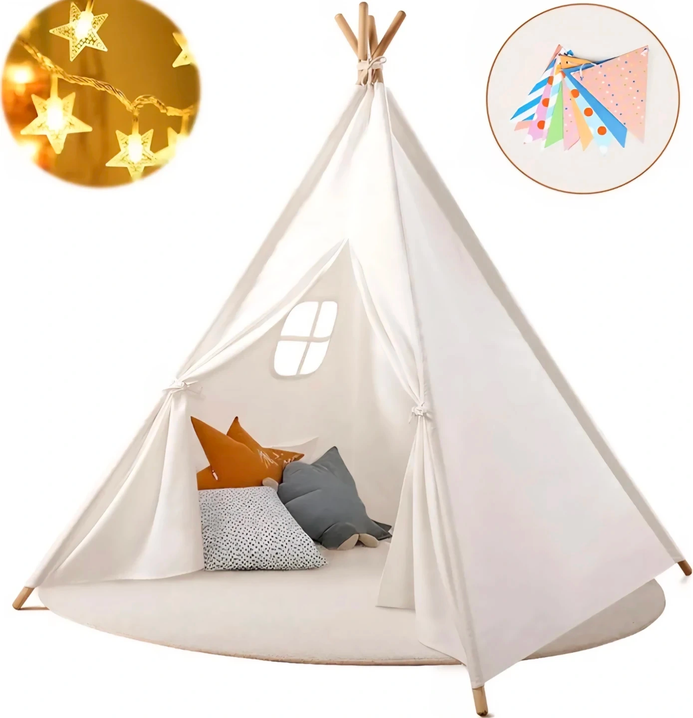 BNIB Kids Teepee Tent for Toddlers with Lights and Colorful Pennants, Teepee Tent for Baby Toys for Boys and Girls Portable Children Playhouse Kids Play Tent for Indoor & Outdoor Use (White)