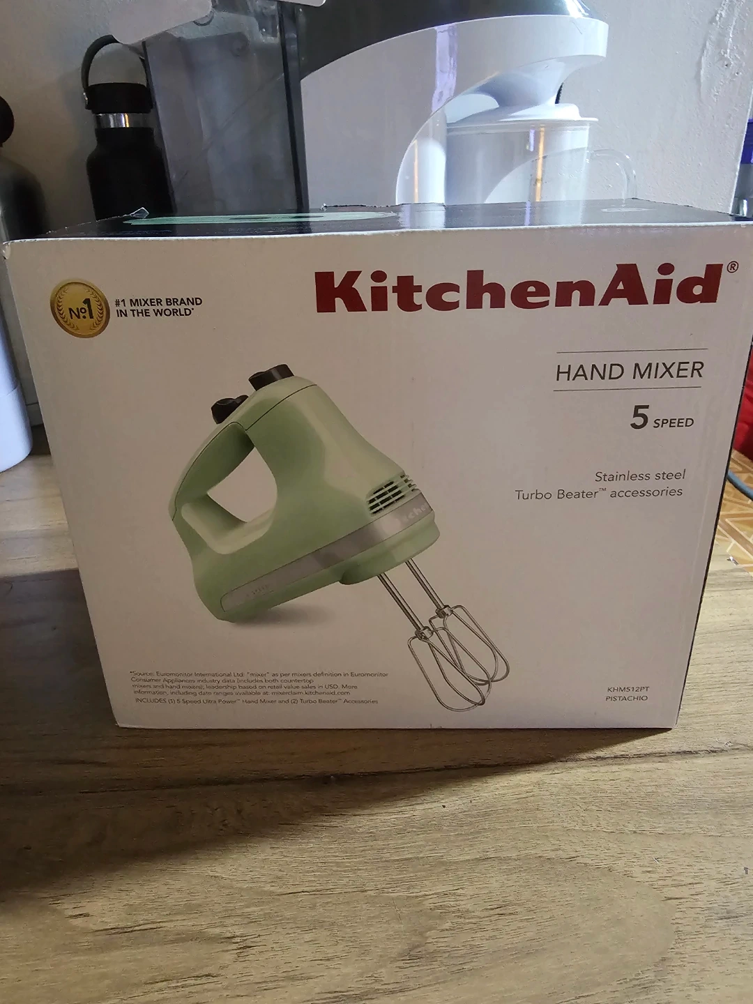 I'm selling a brand new KitchenAid hand mixer in the lovely pistachio color! It's a 5-speed mixer with stainless steel Turbo Beater accessories. Includes (1) 5 Speed Ultra Power™ Hand Mixer and (2) Turbo Beater™ Accessories. The box is included!