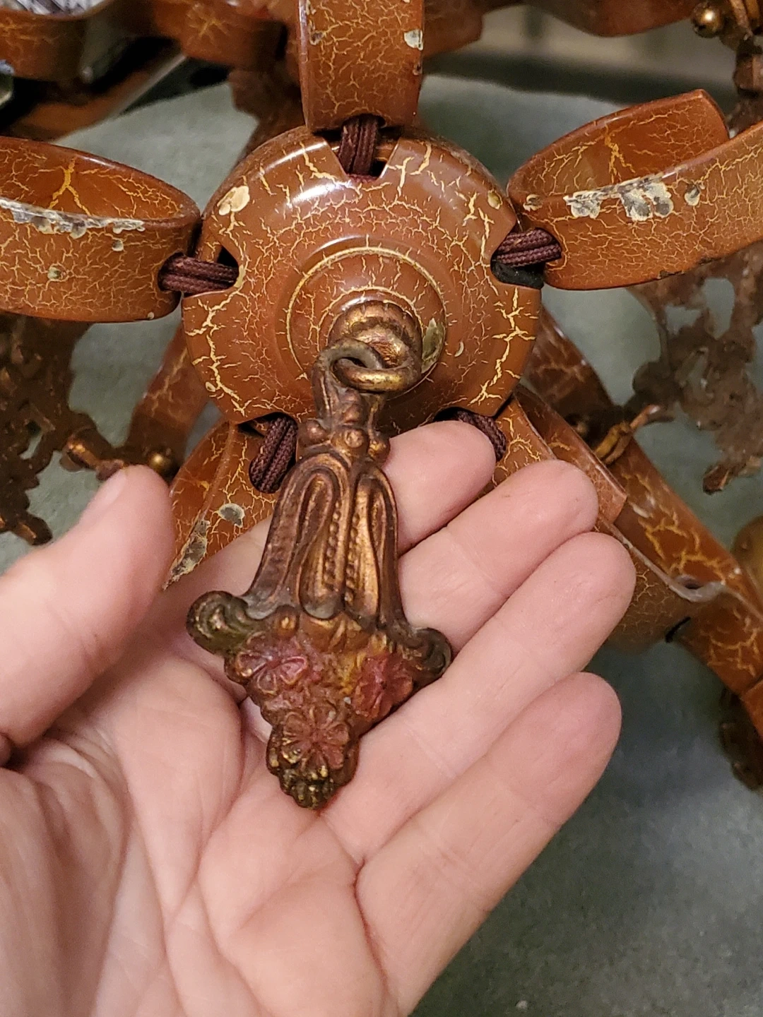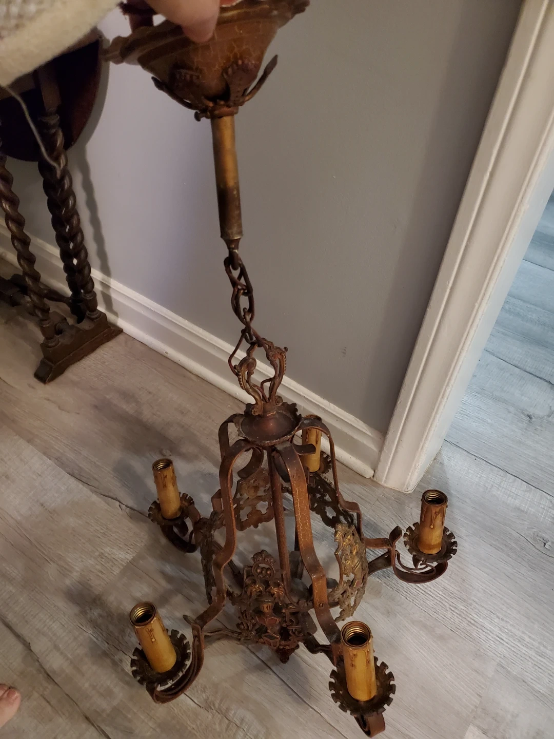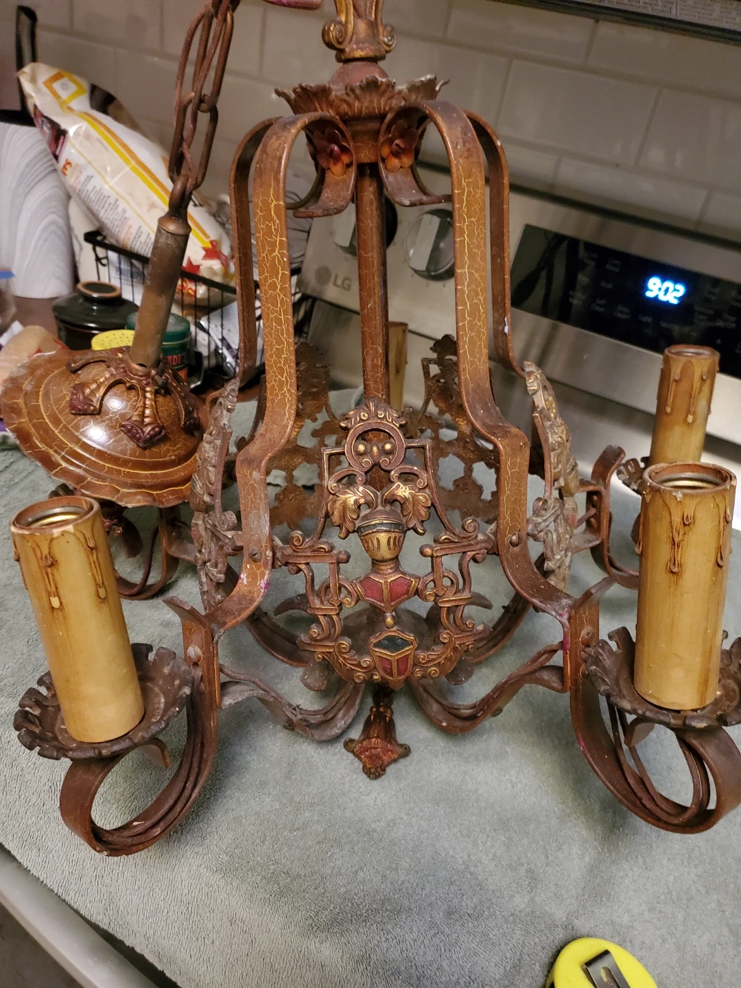 Vintage Ornate Metal Chandelier cast iron and brass enamel