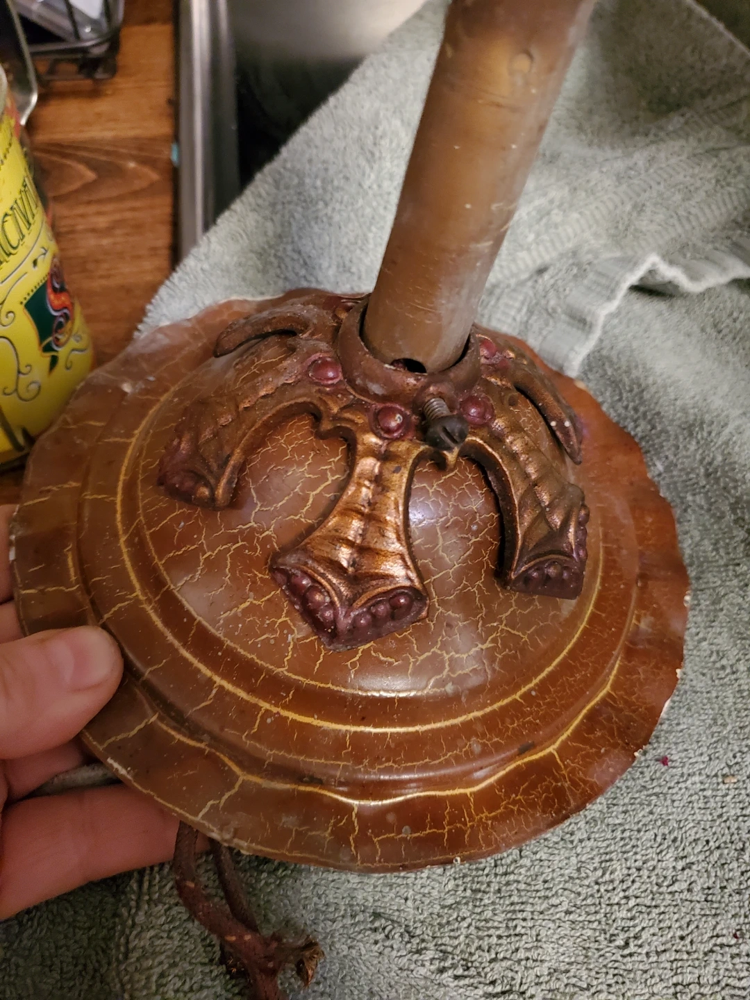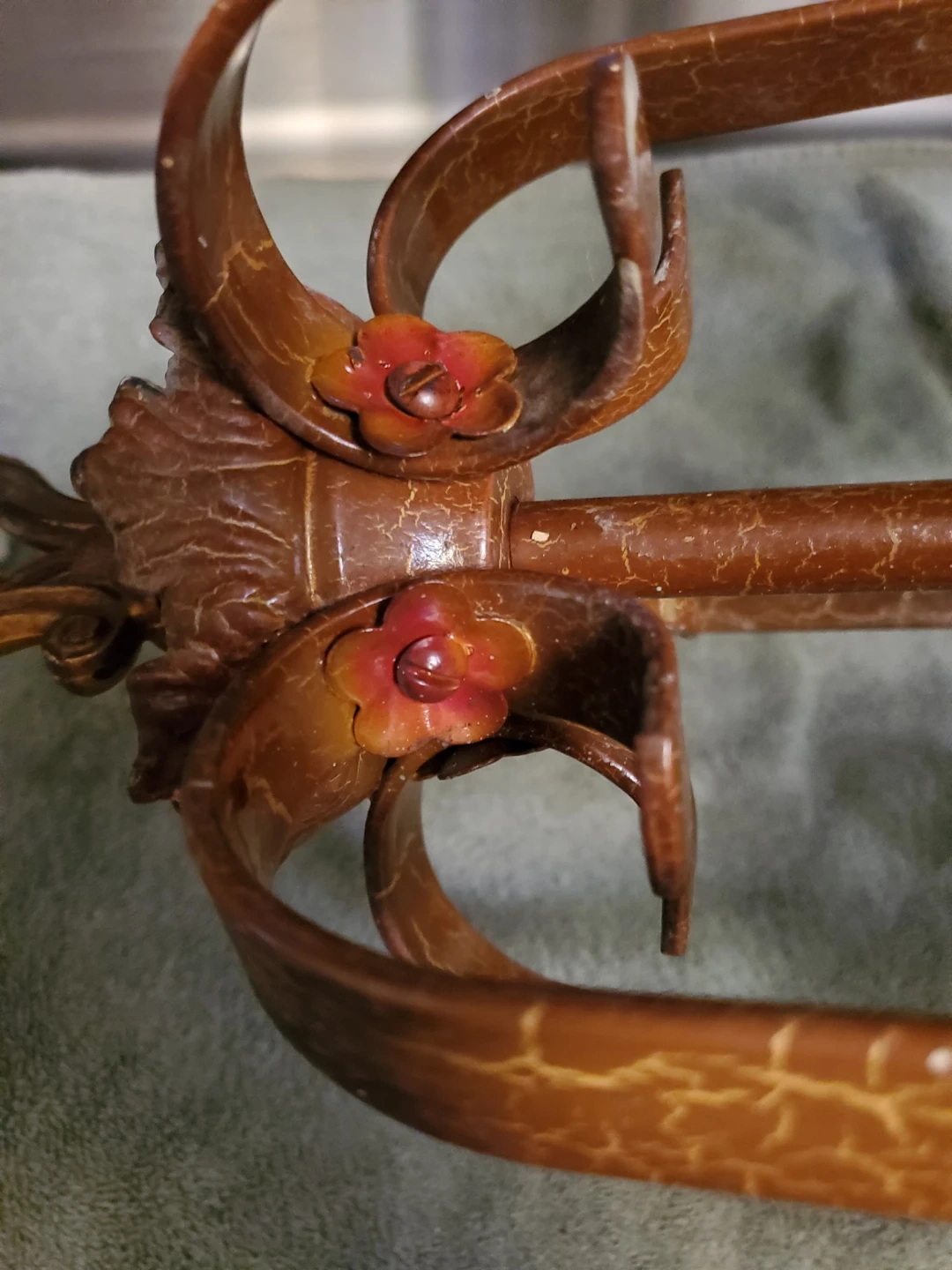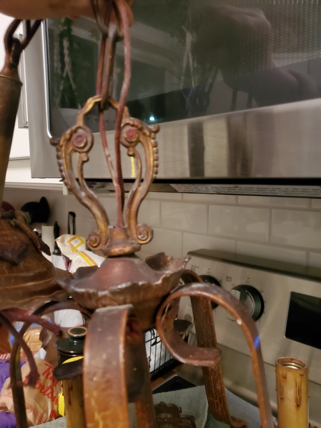 Vintage Ornate Metal Chandelier cast iron and brass enamel