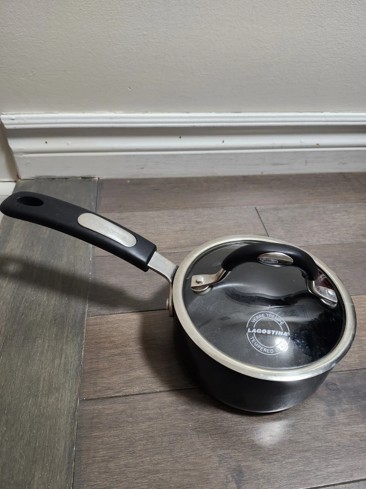 Selling a Lagostina saucepan that's in great shape! It comes with a tempered glass lid, perfect for keeping an eye on your cooking. This is a handy size for sauces and small meals