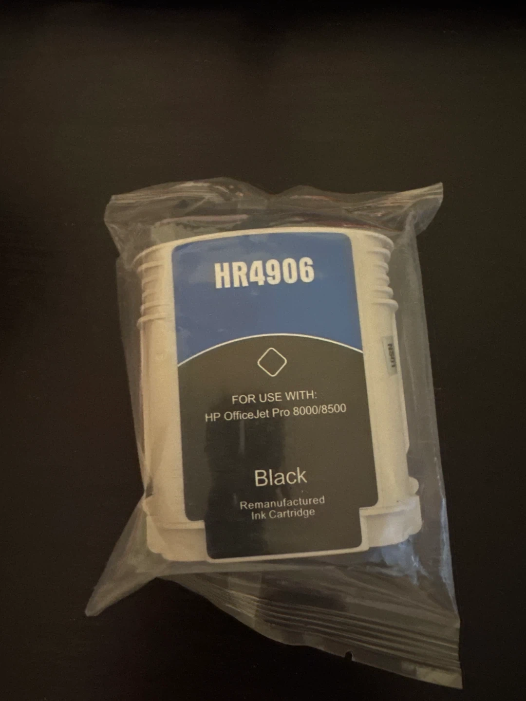 Selling a remanufactured black ink cartridge, model HR4906, for use with HP OfficeJet Pro 8000/8500 printers. It's still sealed in its original packaging and ready to go!