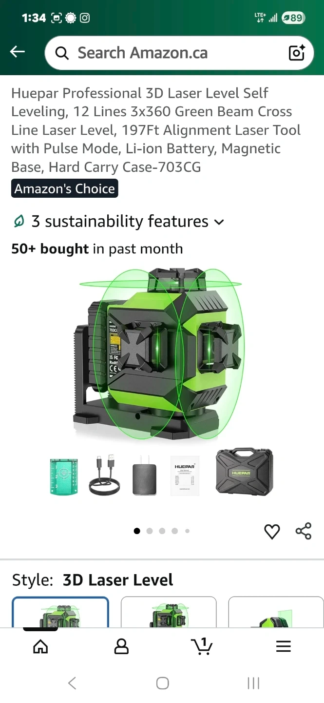 Selling a Huepar B03CG Pro Laser Level in great condition! This self-leveling laser projects 12 lines of 3x360 green beams, making it perfect for alignment tasks. It has a magnetic base and comes with a hard carry case. The original price was $179.99, so this is a great deal!