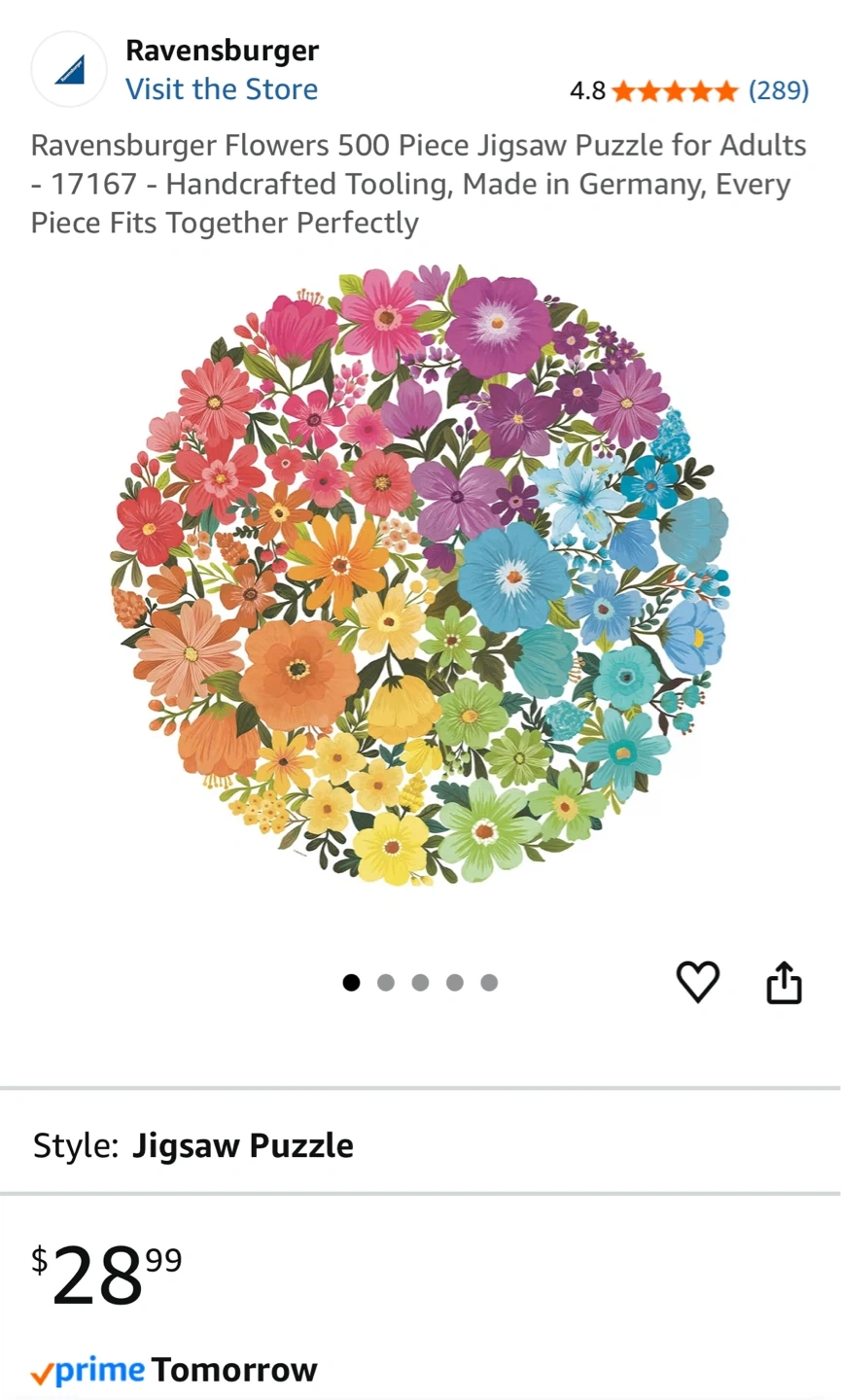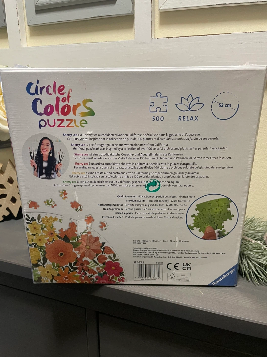 Brand new and giftable Ravensburger ‘Circle of Colors’ — 500 piece jigsaw puzzle. It's still sealed in the original packaging, and it also comes with a poster. The puzzle features a beautiful floral design arranged in a circle of colours. It is a handcrafted puzzle made in Germany. Originally bought for $28.99 plus tax. Pick up from a smoke free home near Browns Line & Lakeshore Boulevard in Etobicoke (Toronto/Mississauga).