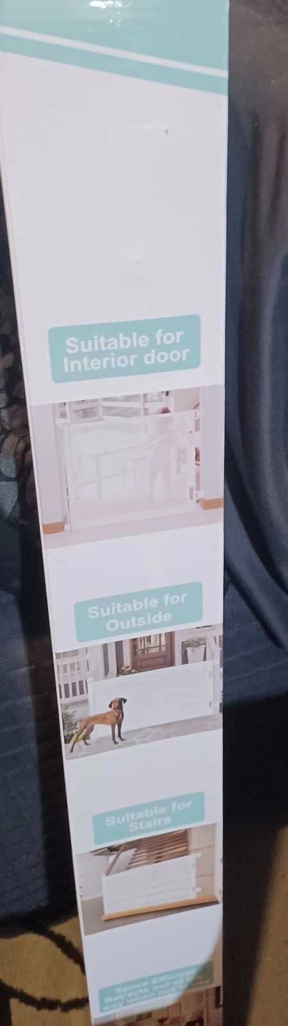 Keep your little ones safe with this new retractable safety gate, perfect for doorways, hallways, and stairs! This gate extends up to 120cm and is suitable for both indoor and outdoor use. It's easy to install and operate, making it a convenient solution for childproofing your home. This gate is 86cm tall and comes in black.