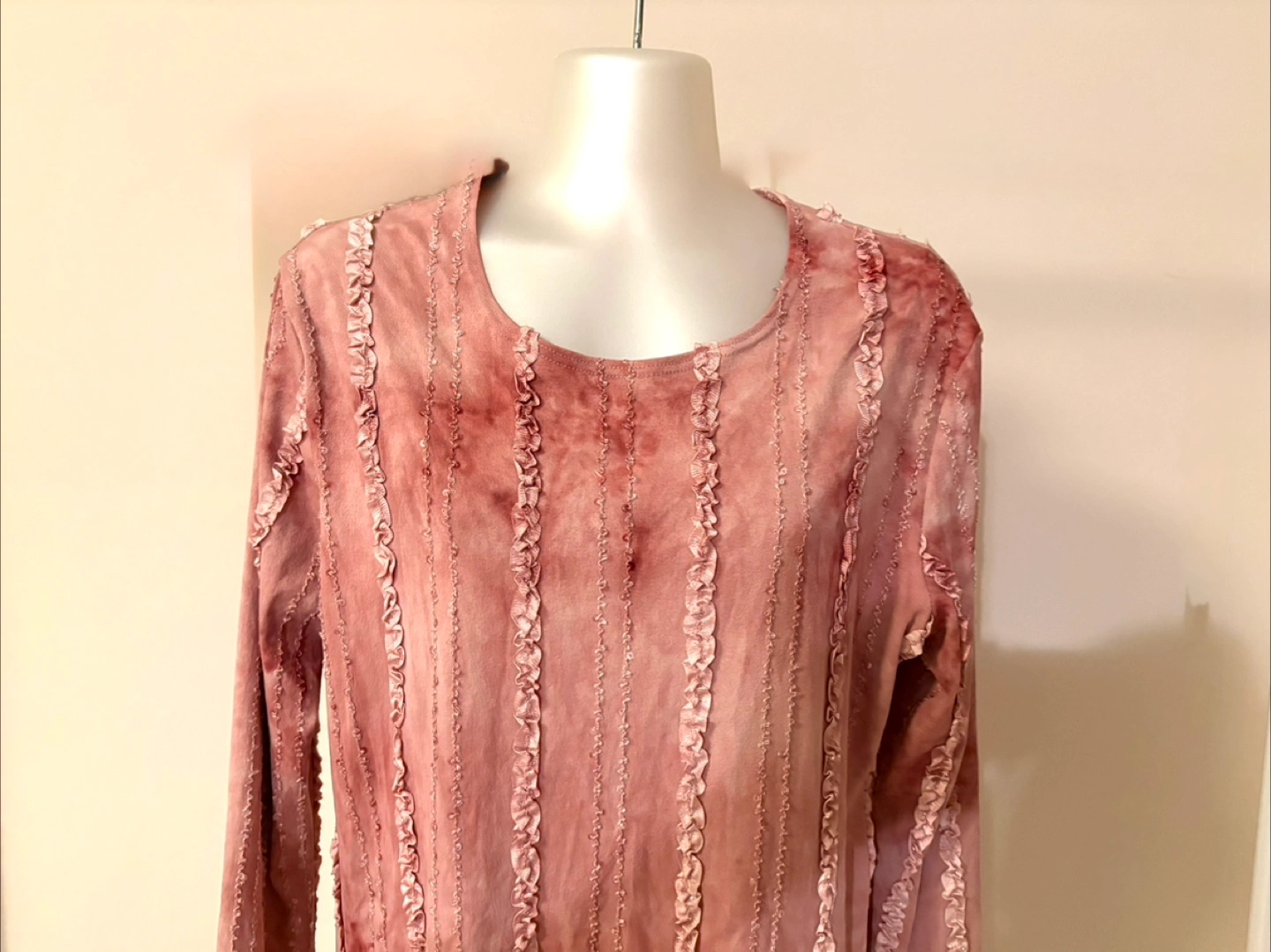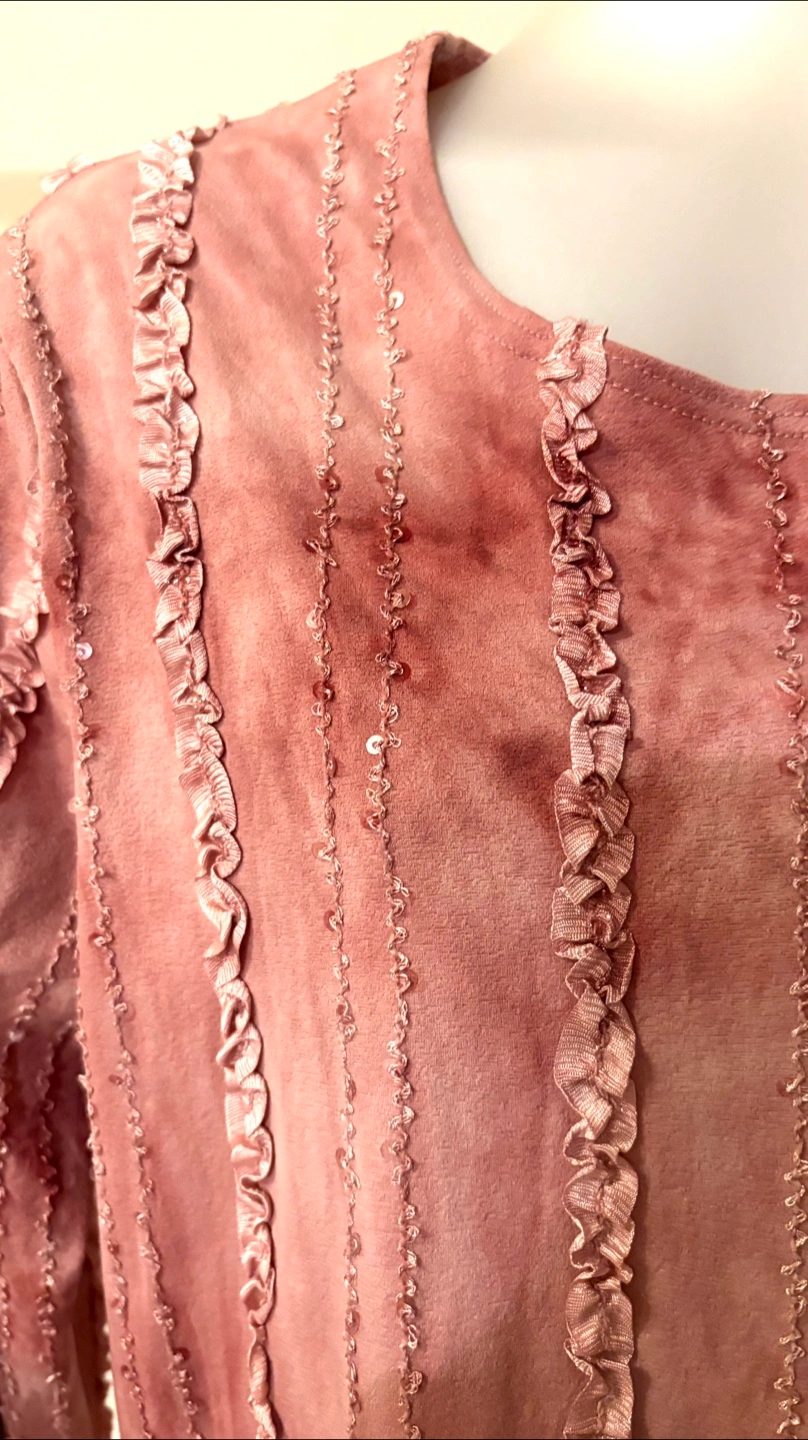 Selling a cute long sleeve top in a lovely shade of pink and fine ruffles design .
