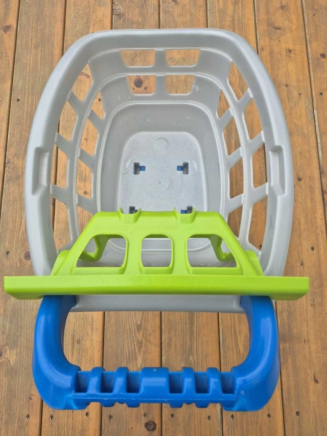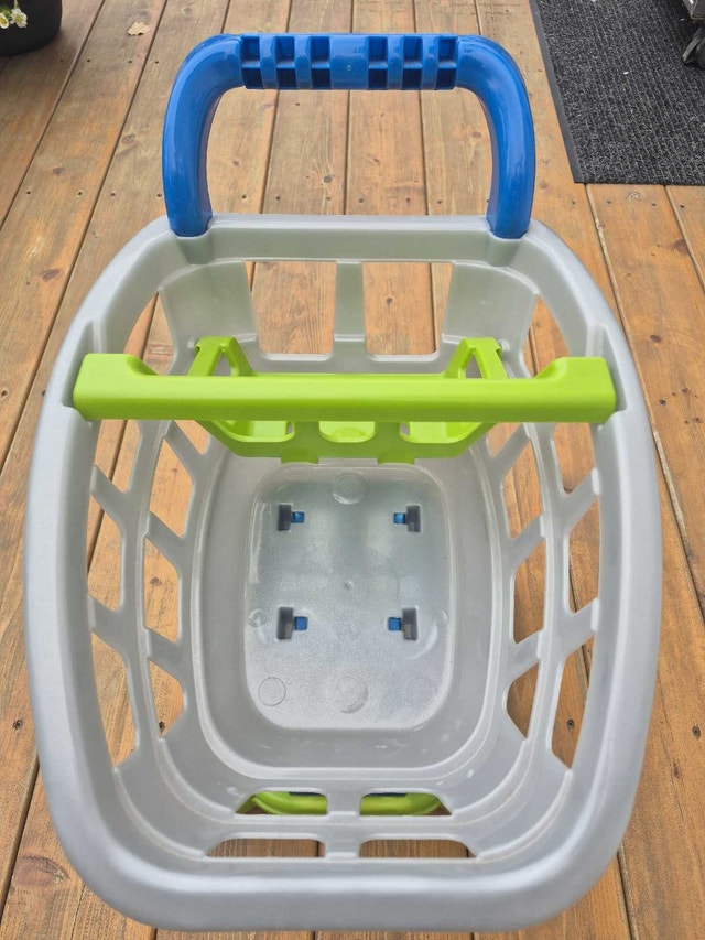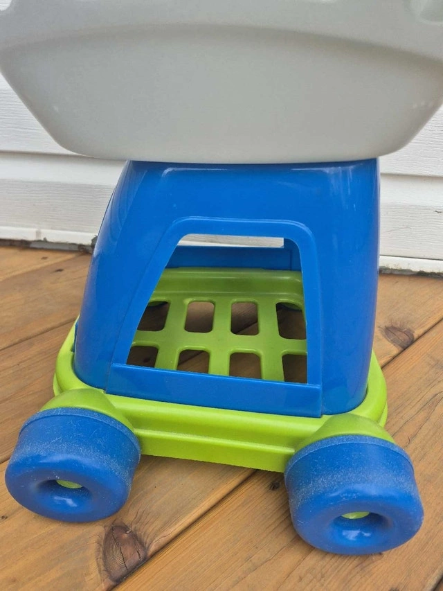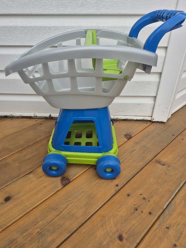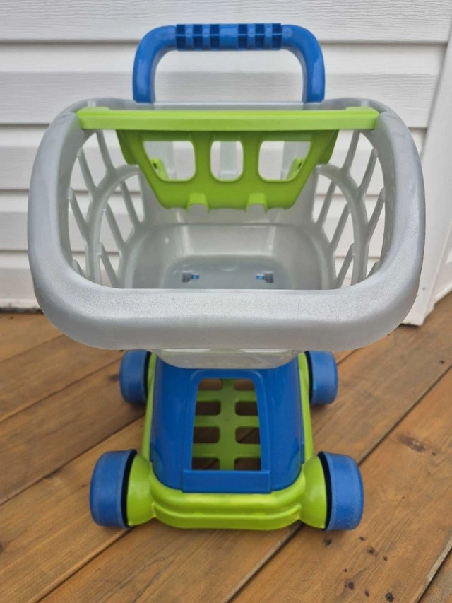 It has a main large basket and a small storage area like a real shopping cart as well as a lower storage area. This could make a great Christmas gift.