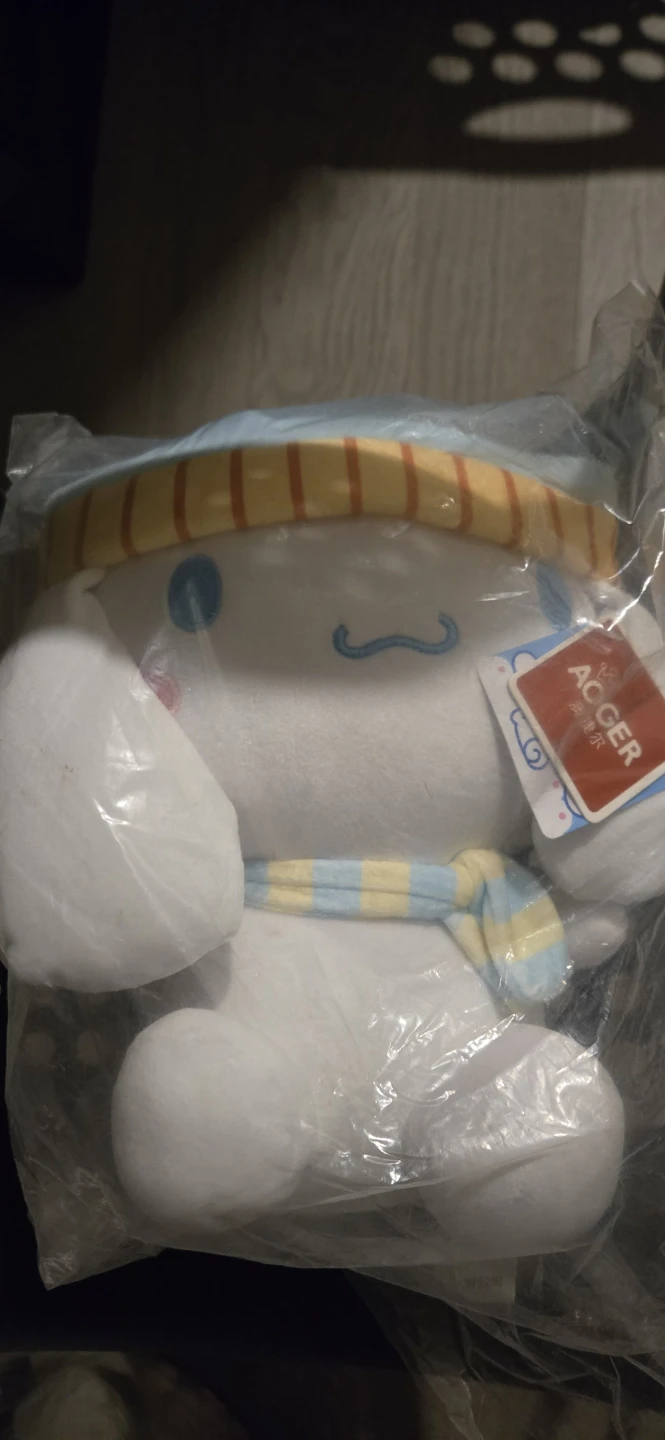 I'm selling a brand new Cinnamoroll plush toy! It's still in its original packaging, so it's in perfect condition. This plushie is super cute with its little hat and scarf. It would make a great gift for any Cinnamoroll fan.