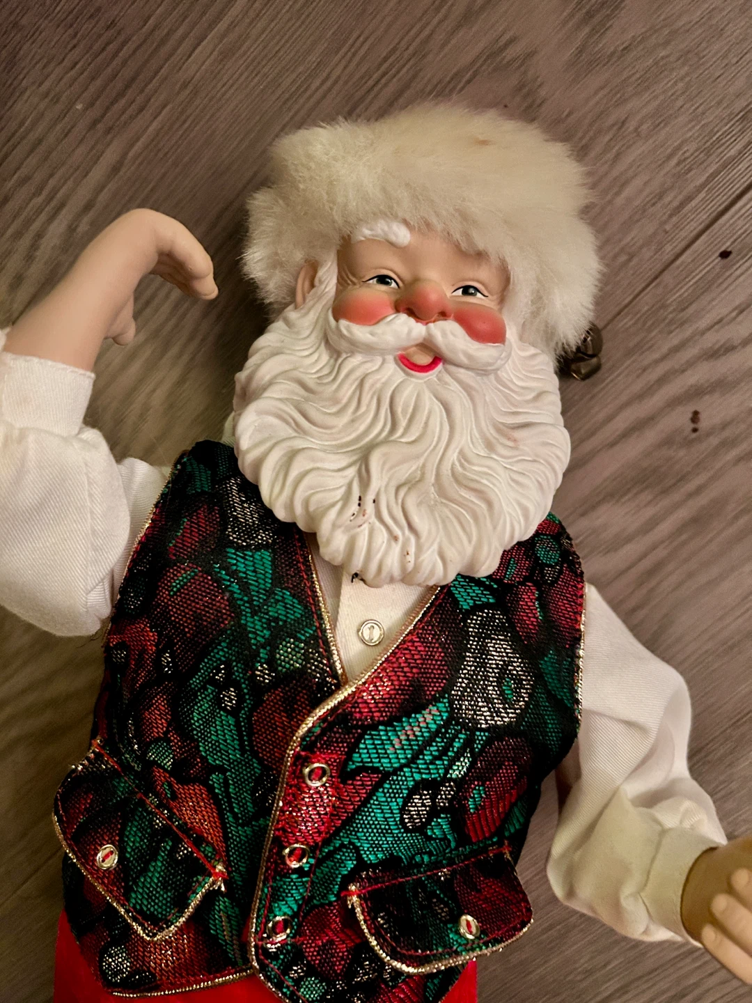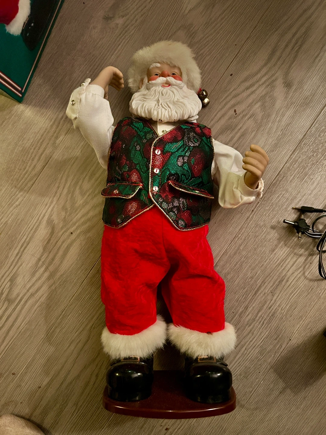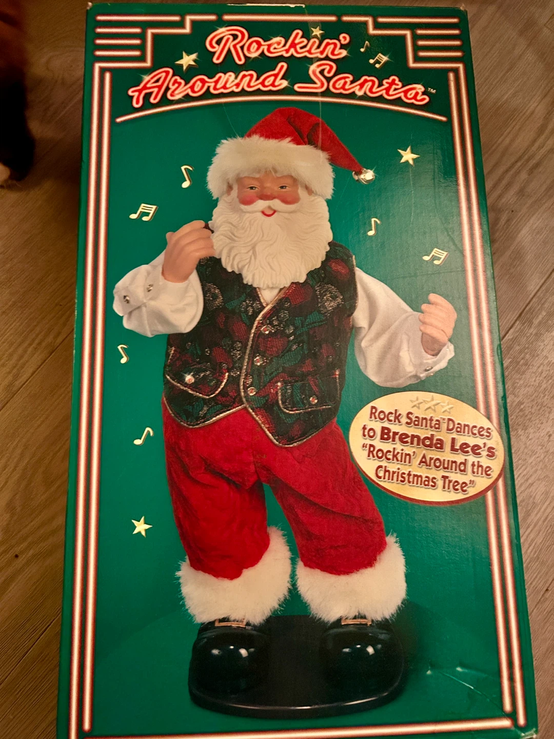Get ready to rock around the Christmas tree with this animated Santa figure! He dances to Brenda Lee's "Rockin' Around the Christmas Tree". Comes with the original box and power cord.